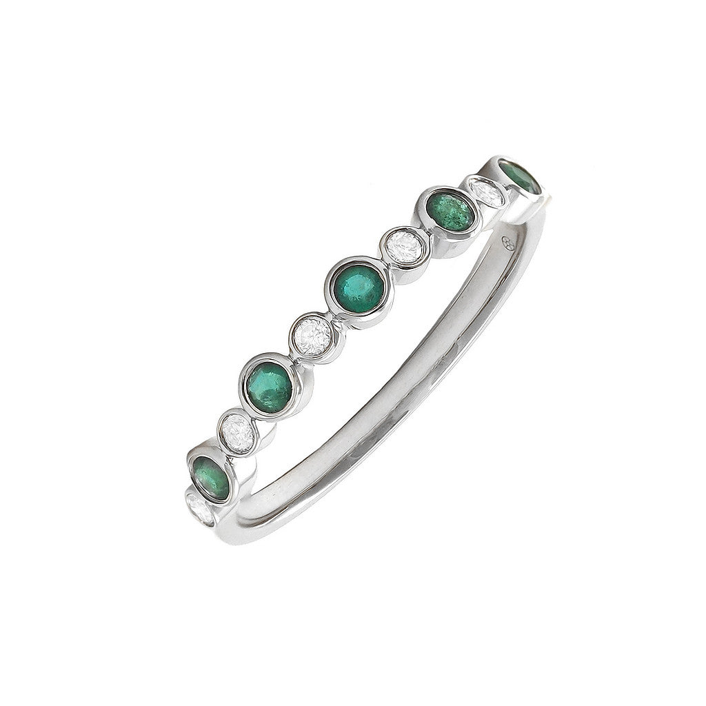 Anillo en oro blanco 14k con .10ct de diamantes y .18ct de esmeralda.