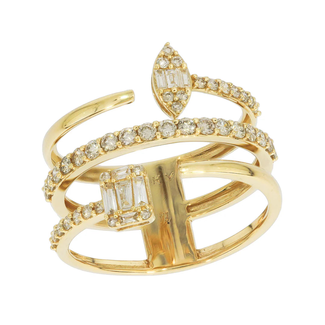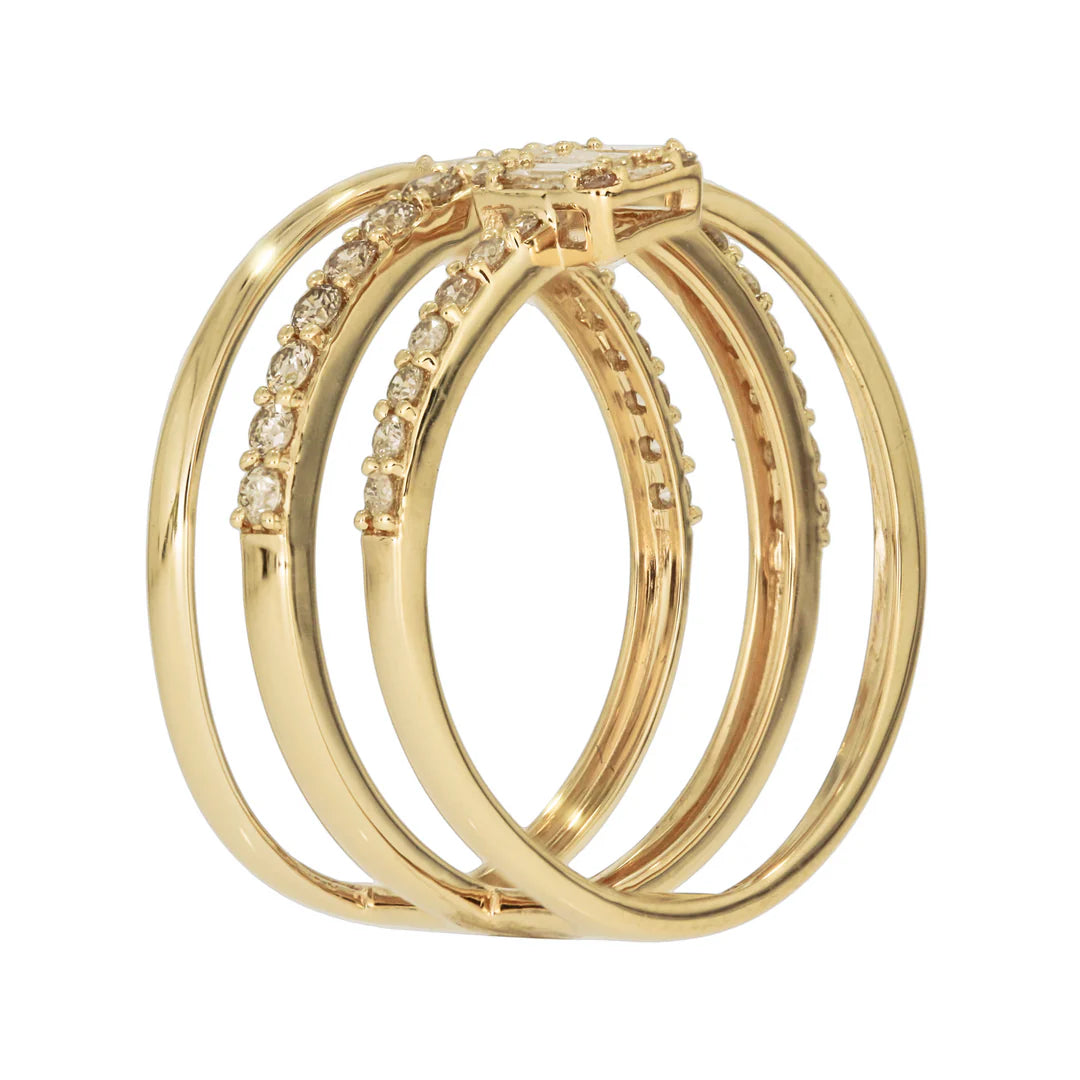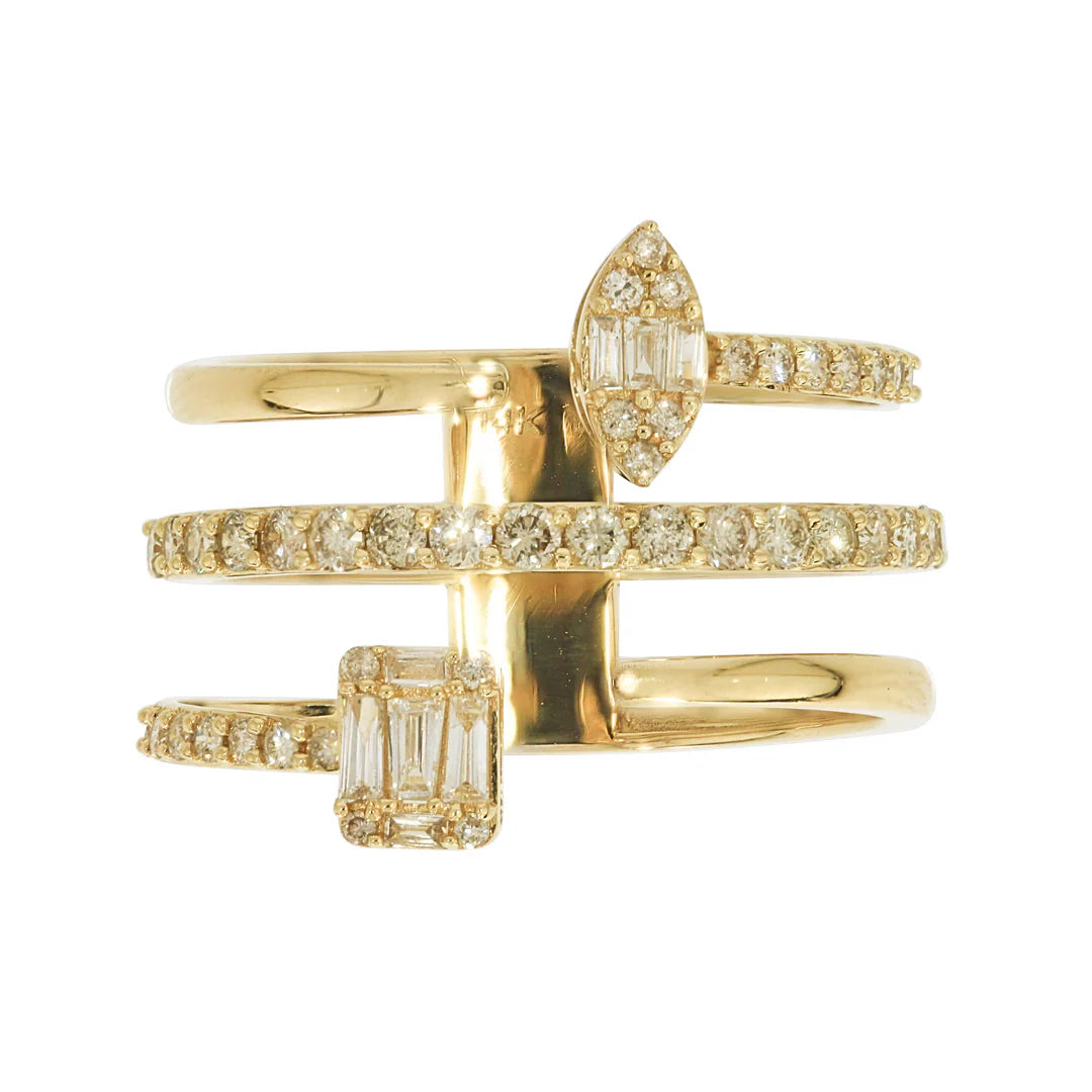 Anillo triple en oro amarillo 14k con .61ct de diamantes.