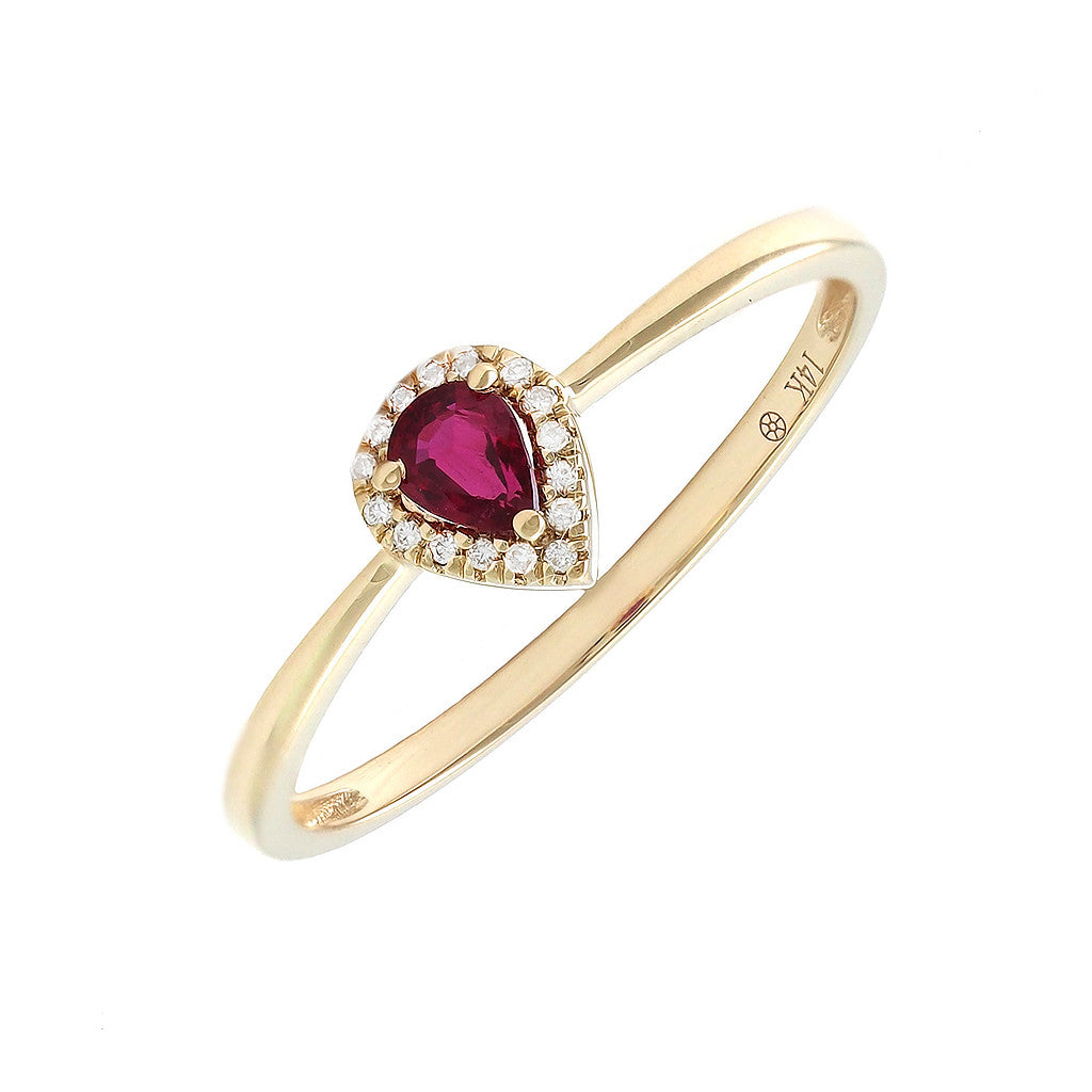 Anillo en oro amarillo 14k con .03ct de diamante y .18ct ruby.