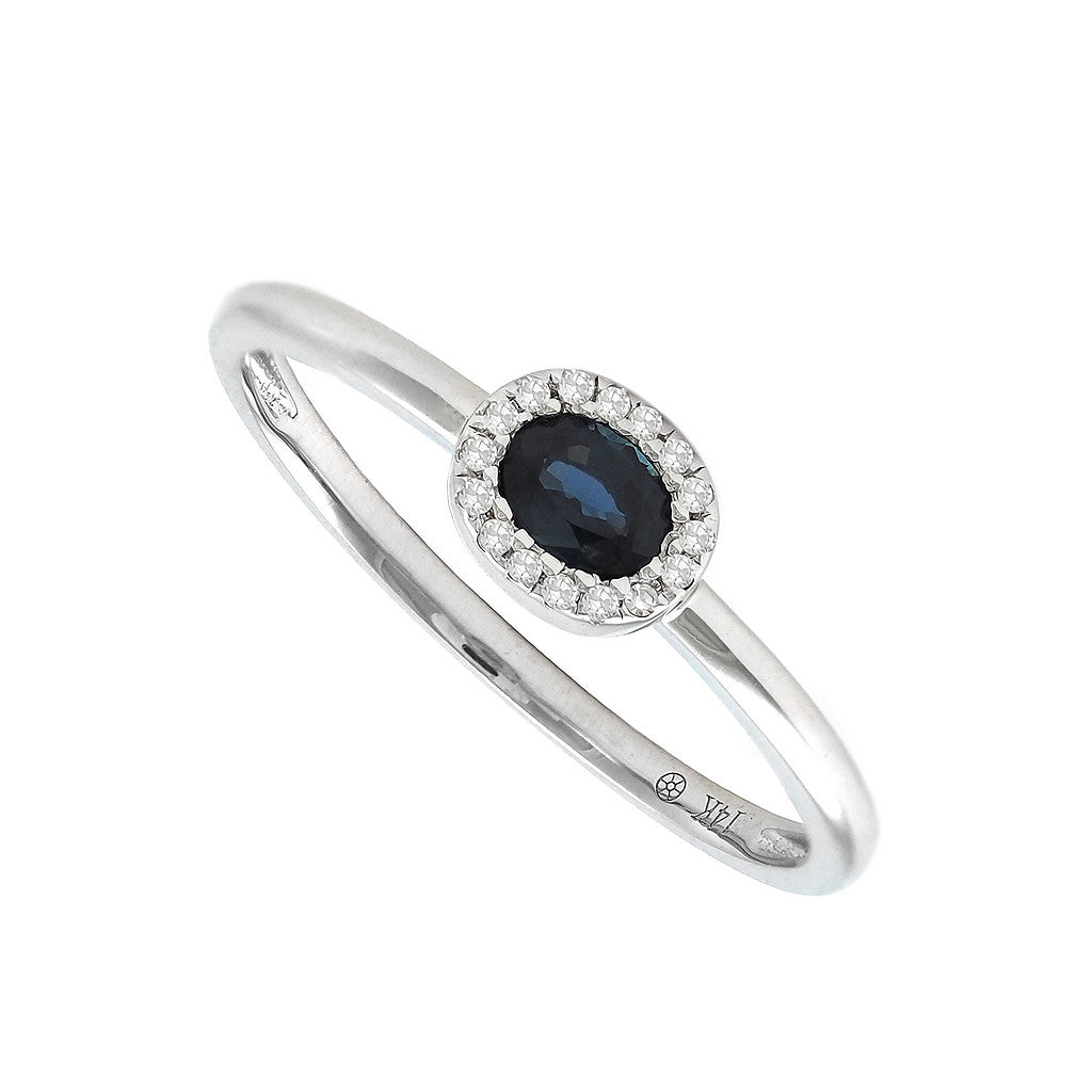 Anillo en oro blanco 14k con .03ct de diamantes y .20ct de zafiro.