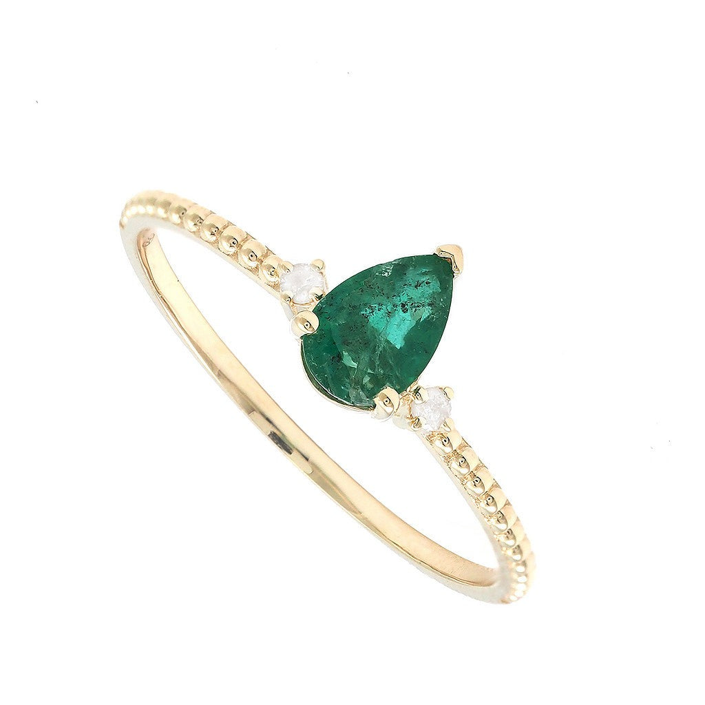 Anillo en oro amarillo 14k con 0.03ct de diamante y 0.44ct de esmeralda.