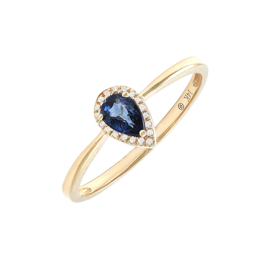 Anillo en oro blanco 14k con .04ct de diamantes y .32ct de zafiro.