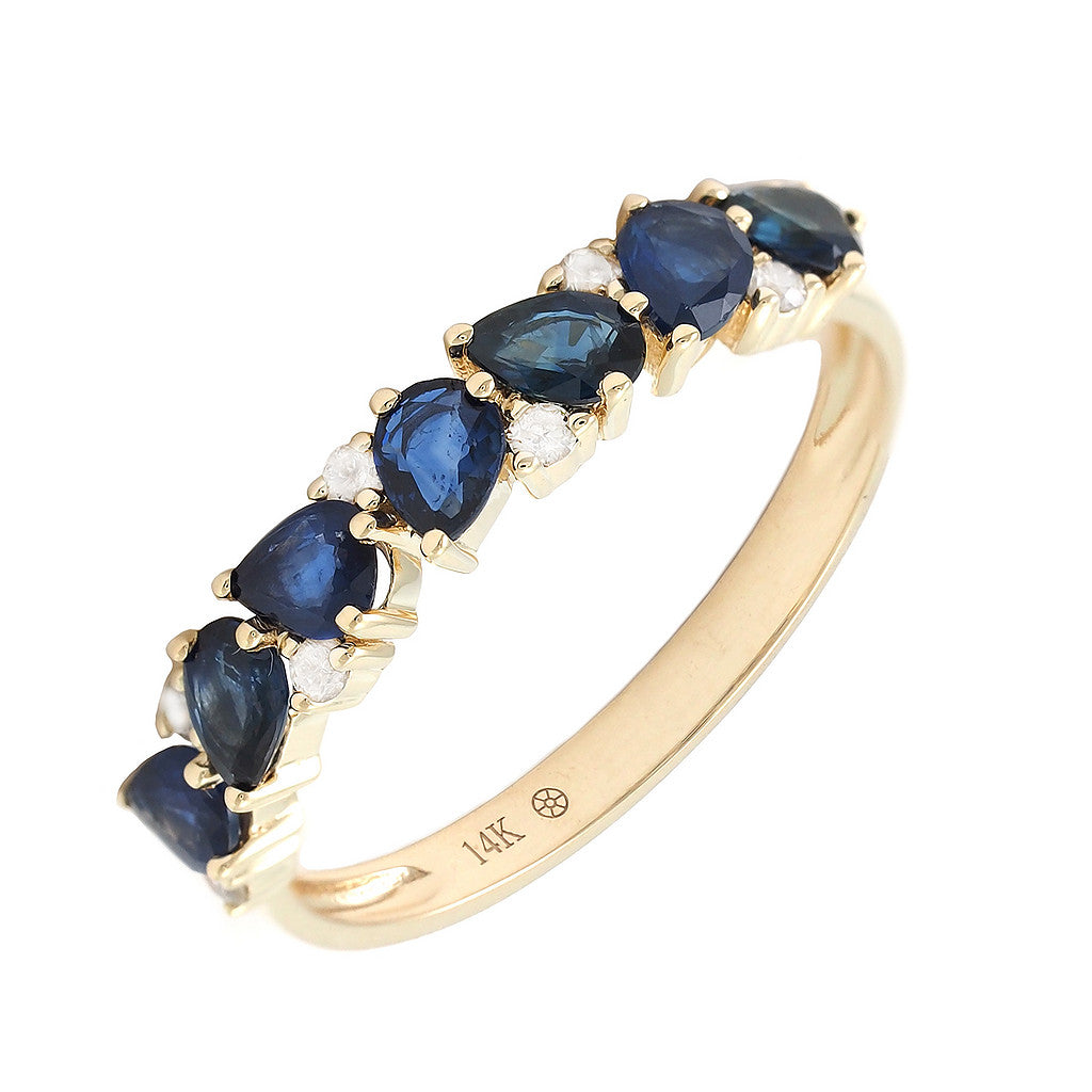 Anillo en oro amarillo 14k con 0.10ct de diamante y 1.11ct de zafiro.