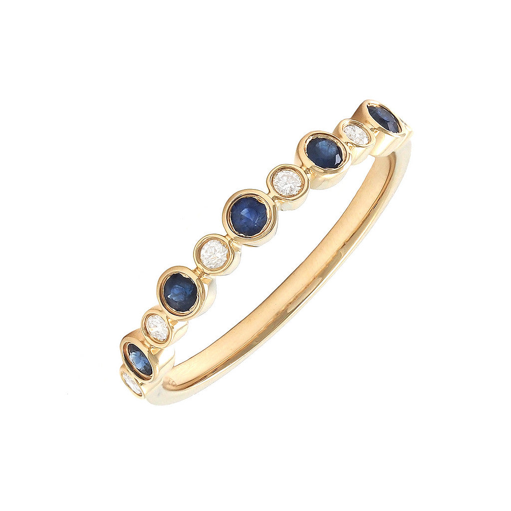 Anillo en oro amarillo 14k con .10ct de diamante y .22ct de zafiro.