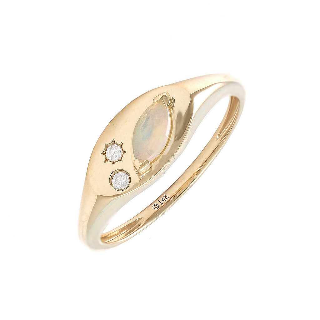 Anillo en oro amarillo 14k con .03ct de diamantes y .13ct de opalo.