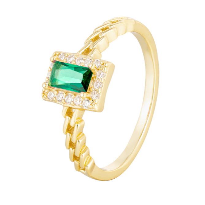 Anillo en plata con baño de oro y zirconia.