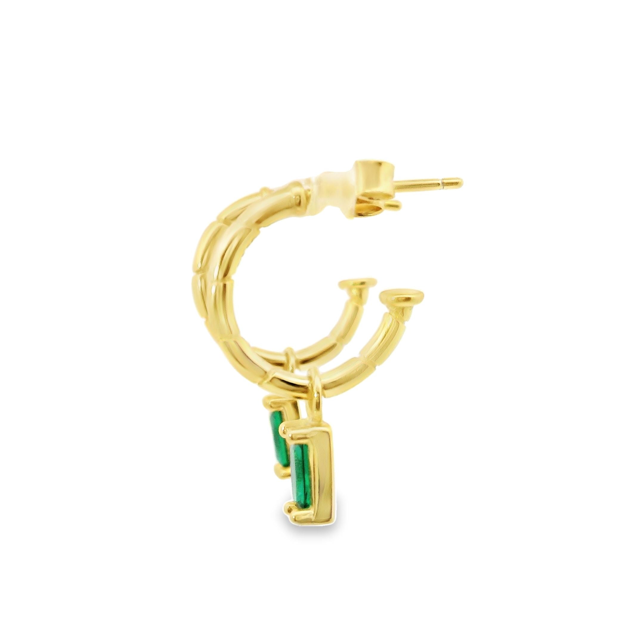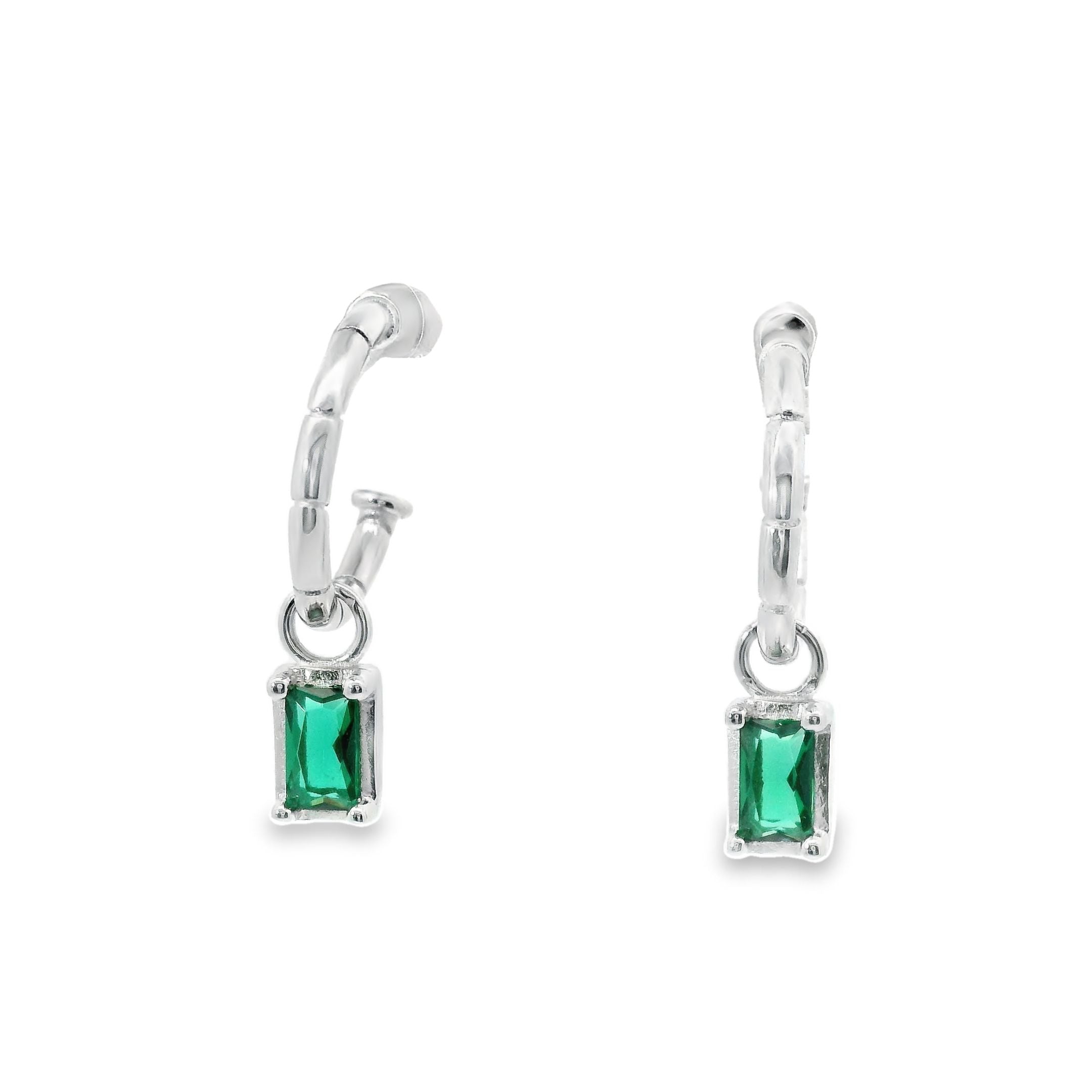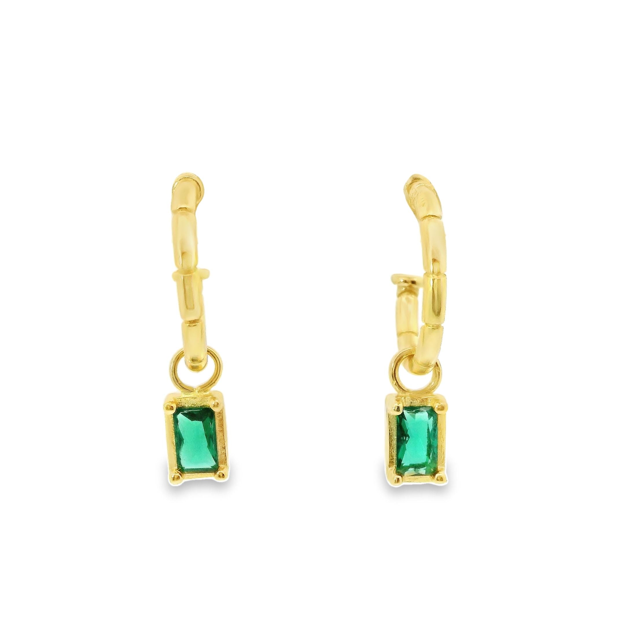 Aretes tipo huggie en plata con baño de oro y con piedrita colgando en zirconia.
