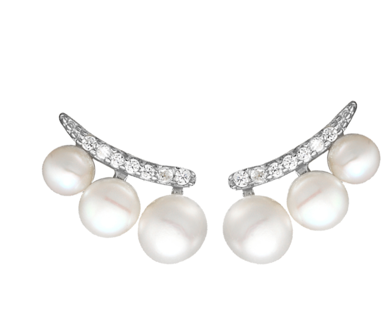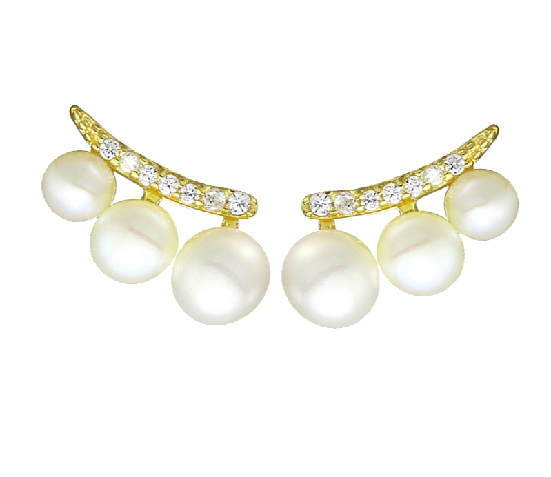 Studs en plata con baño de oro, zirconia y perla natural.
