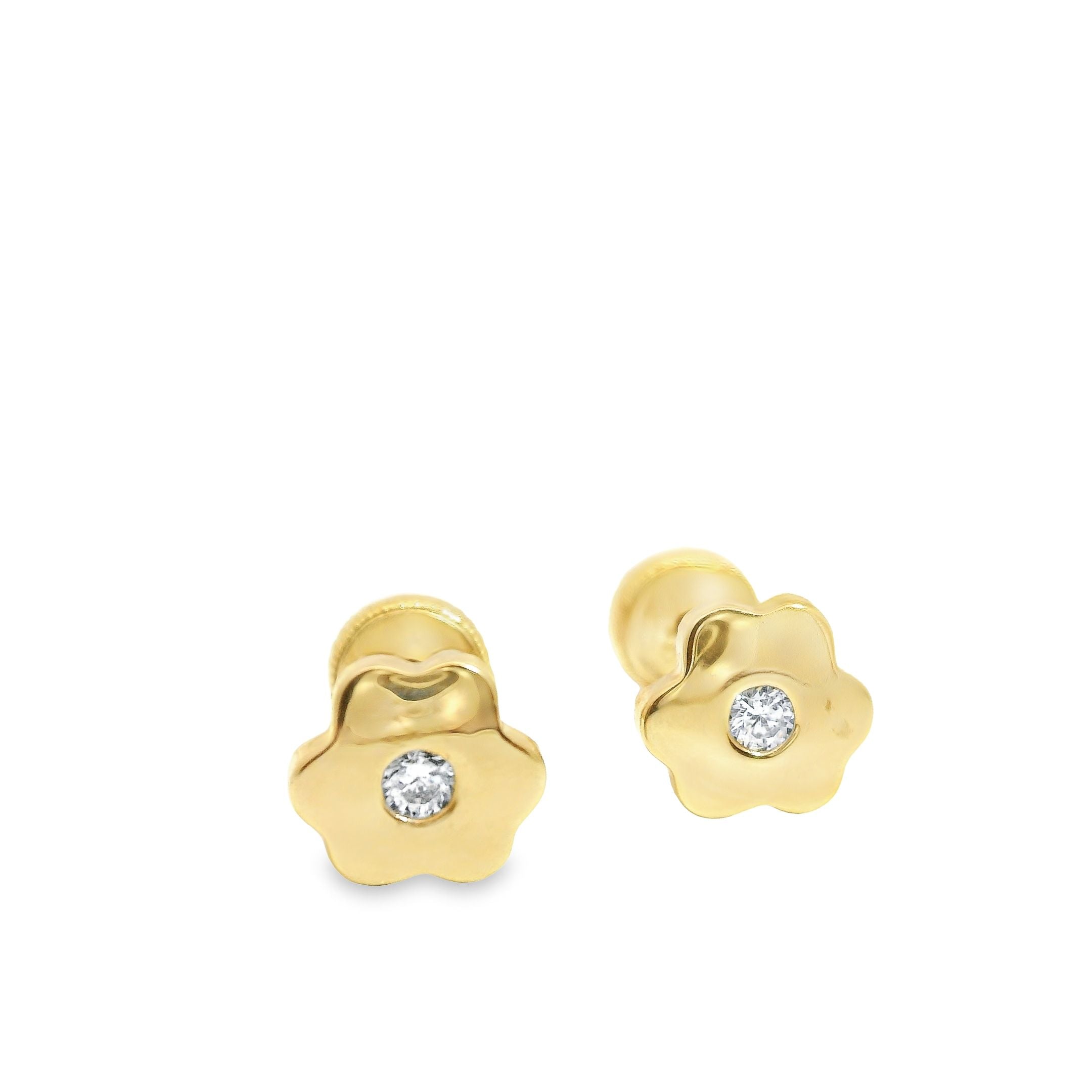 Aretes de bebe en oro amarillo 14k con zirconia.