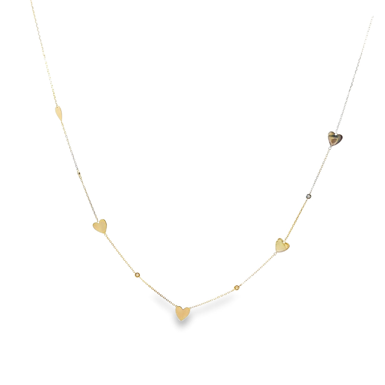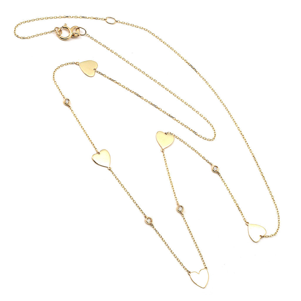 Collar de corazones en oro amarillo 14k con 0.05ct de diamantes.