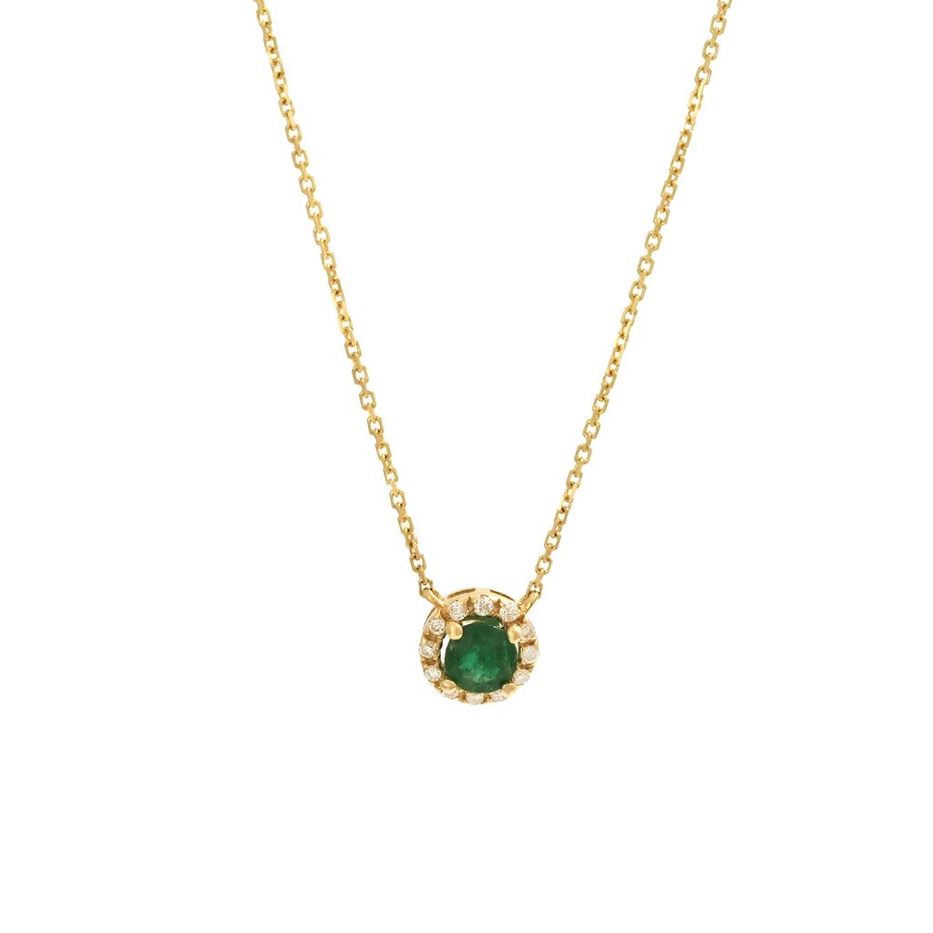 Collar en oro amarillo 14k con .06ct de diamantes y .28ct de esmeraldas.