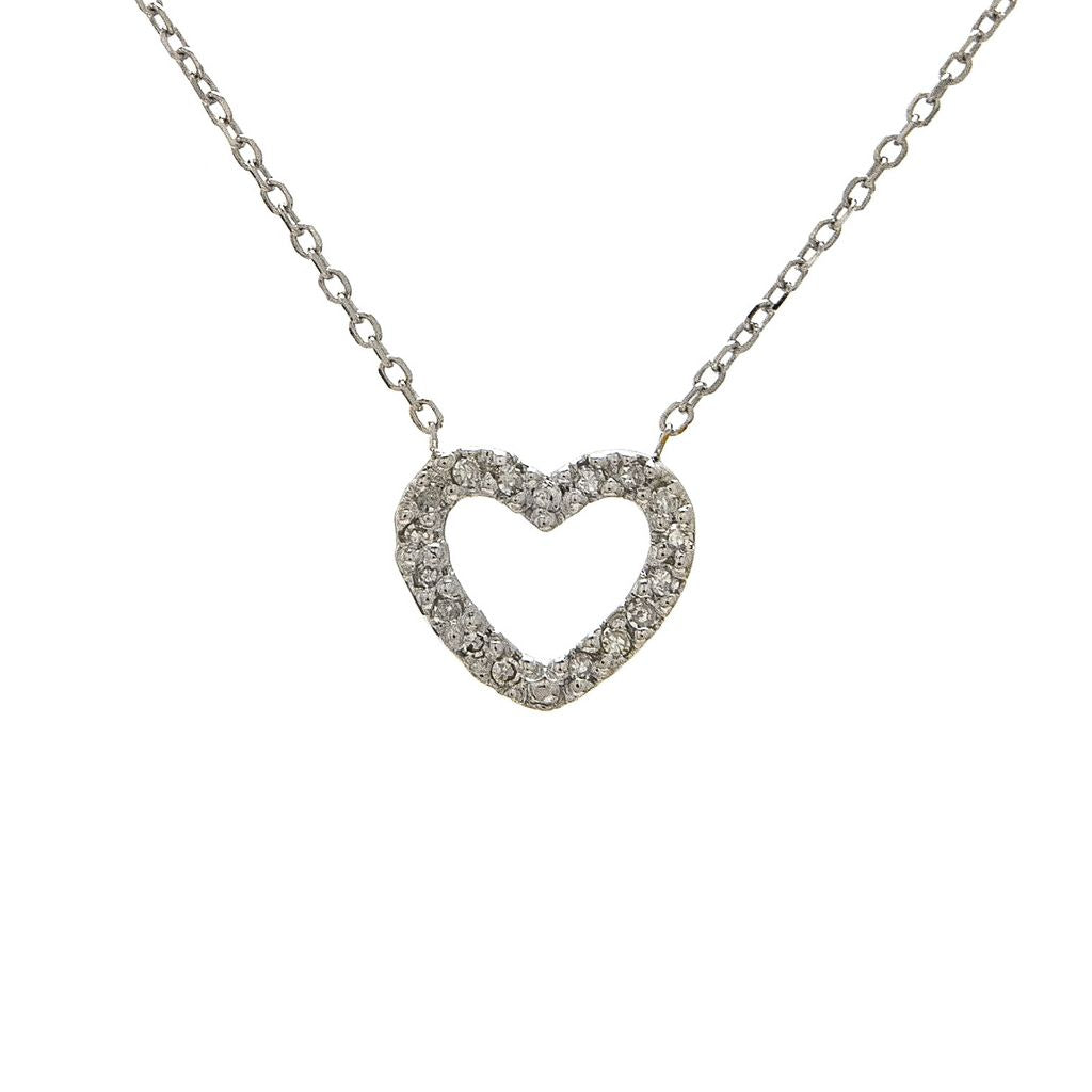 Collar de dije de corazón mini con .05ct de diamantes y cadena en oro amarillo 14k.