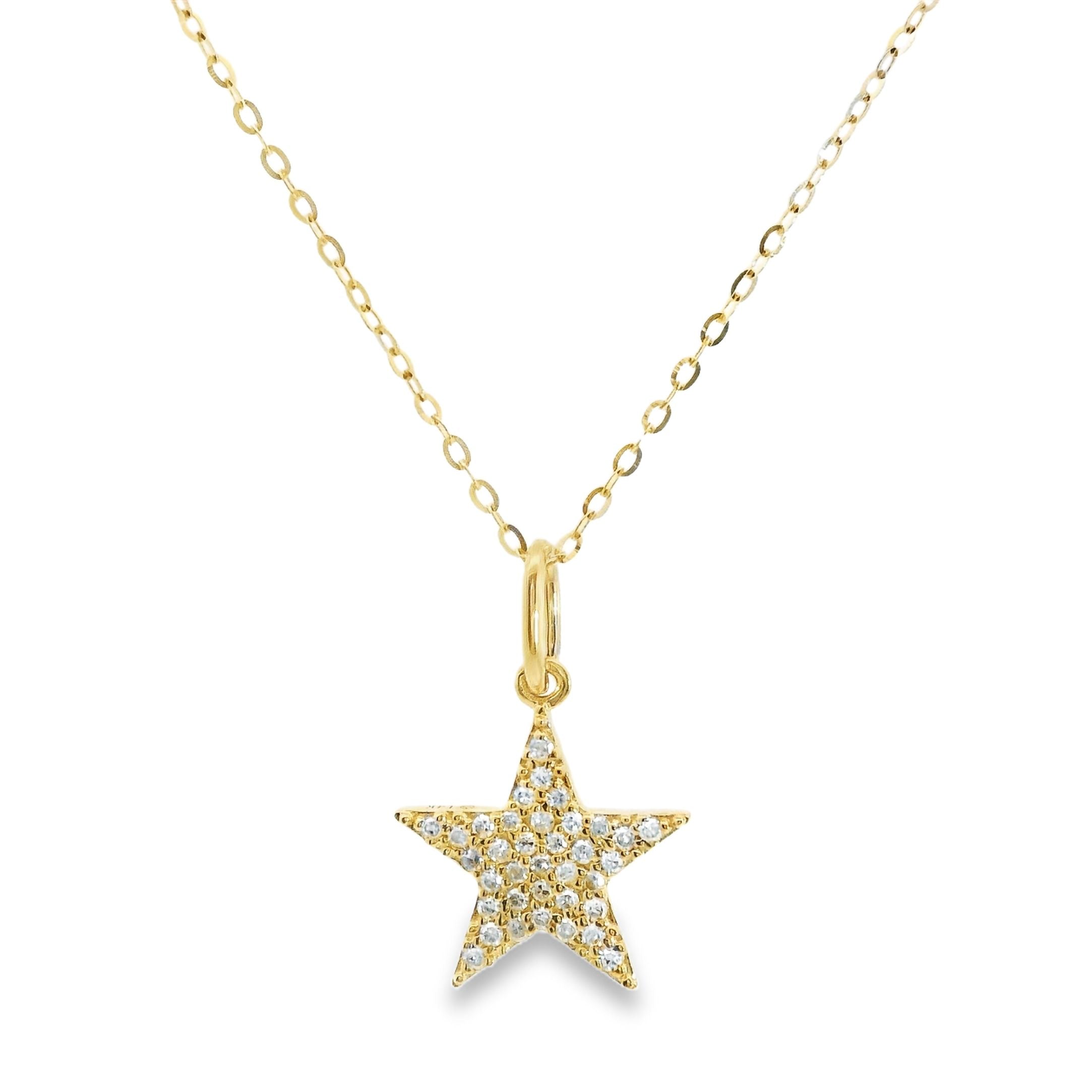 Collar de estrella con .11ct de diamantes y cadena en oro amarillo 14k.