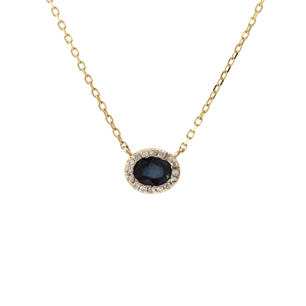 Collar en oro amarillo 14k con .23ct de zafiro y .03ct de diamante.