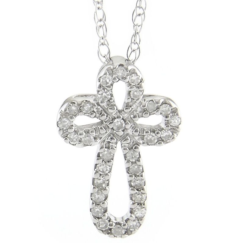 Cruz en oro blanco 14k con .09ct de diamante, cadena 16"