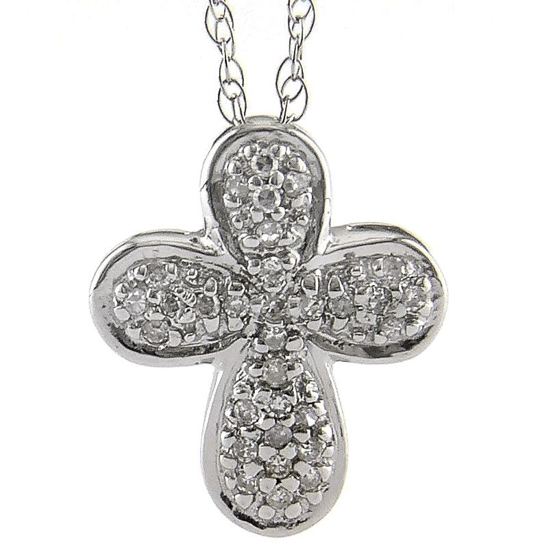 Cruz en oro blanco 14k con .10ct de diamantes en pave y cadena de 16"