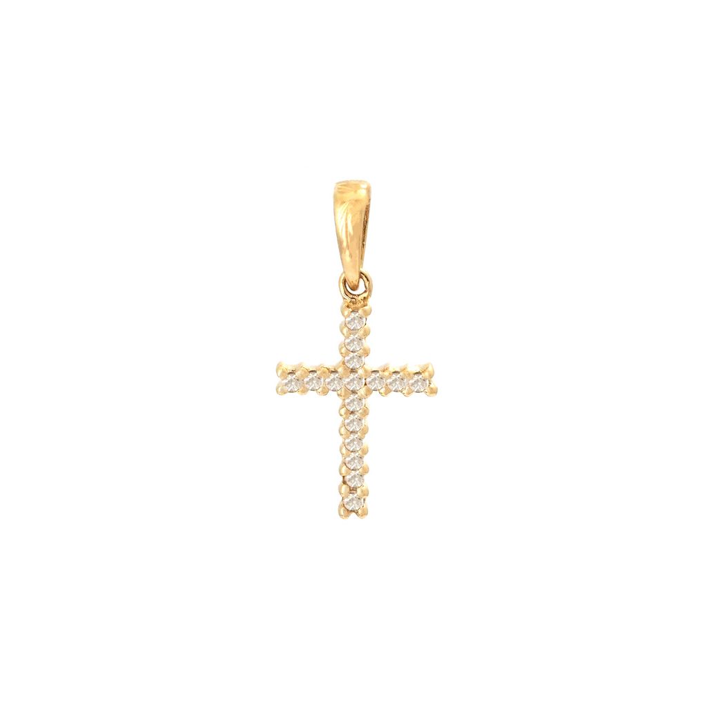 Cruz en oro amarillo 14k con cadena y 0.15ct de diamantes.