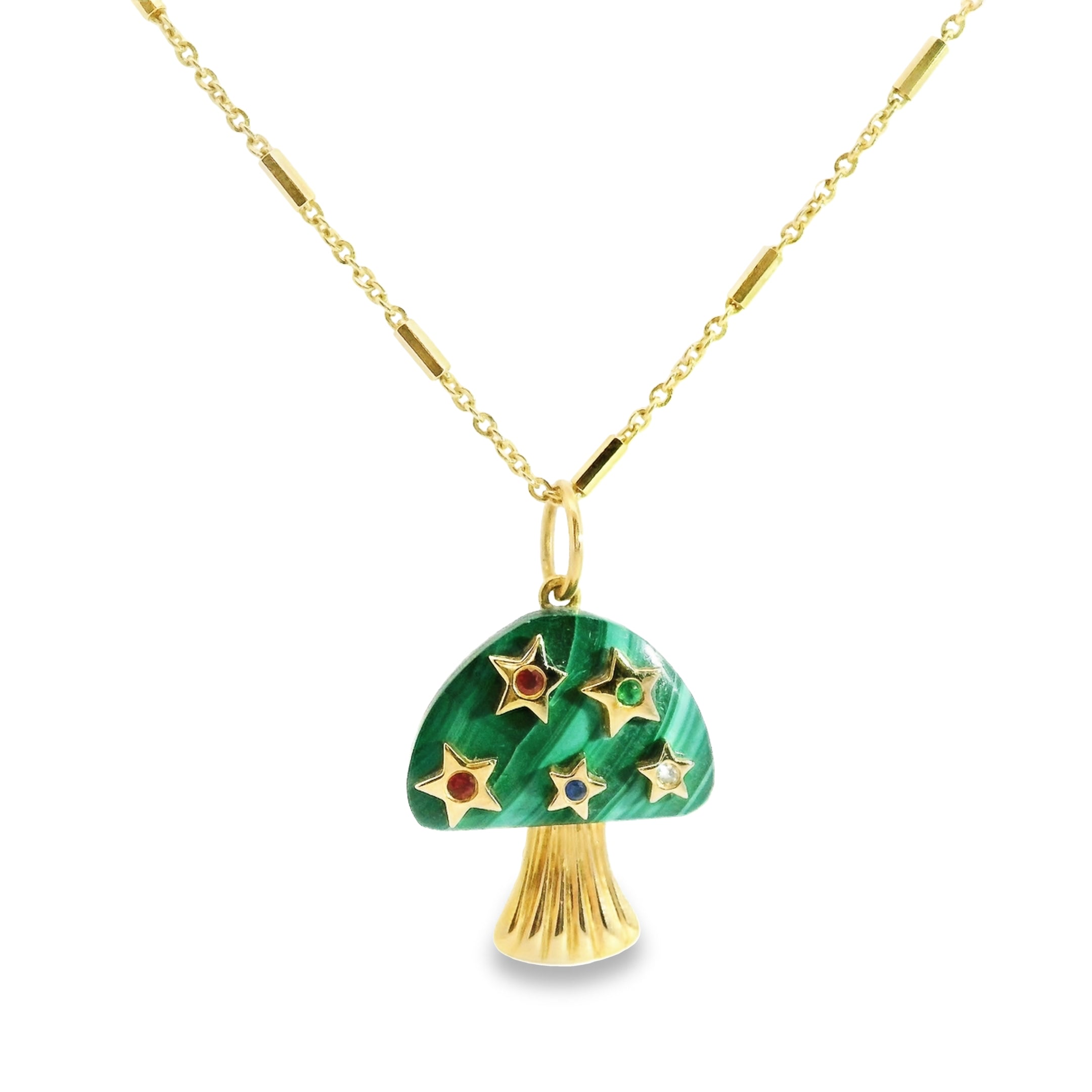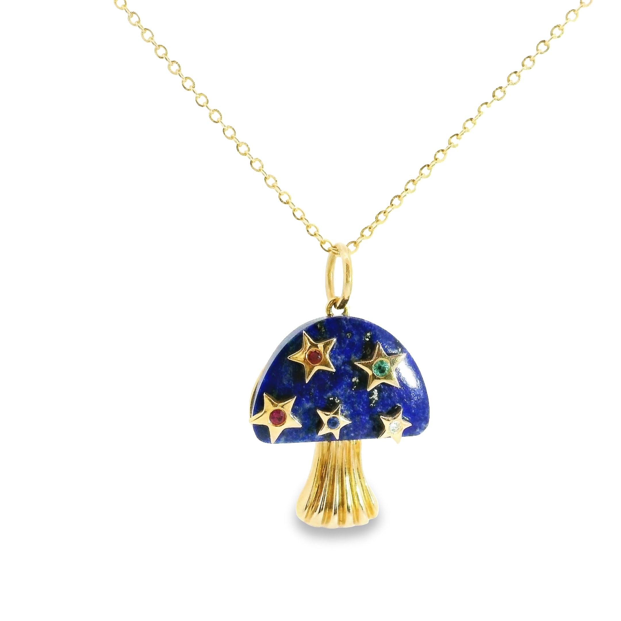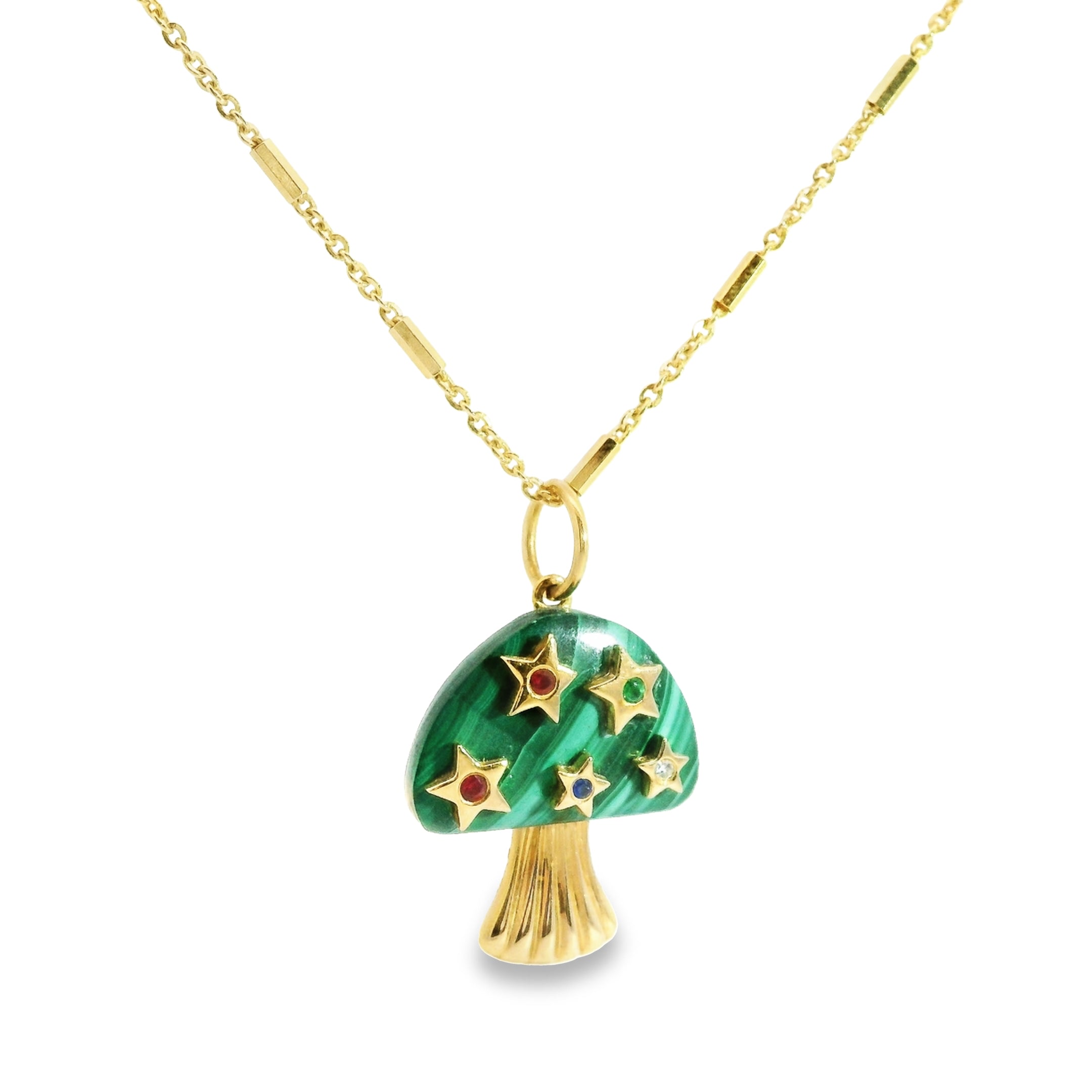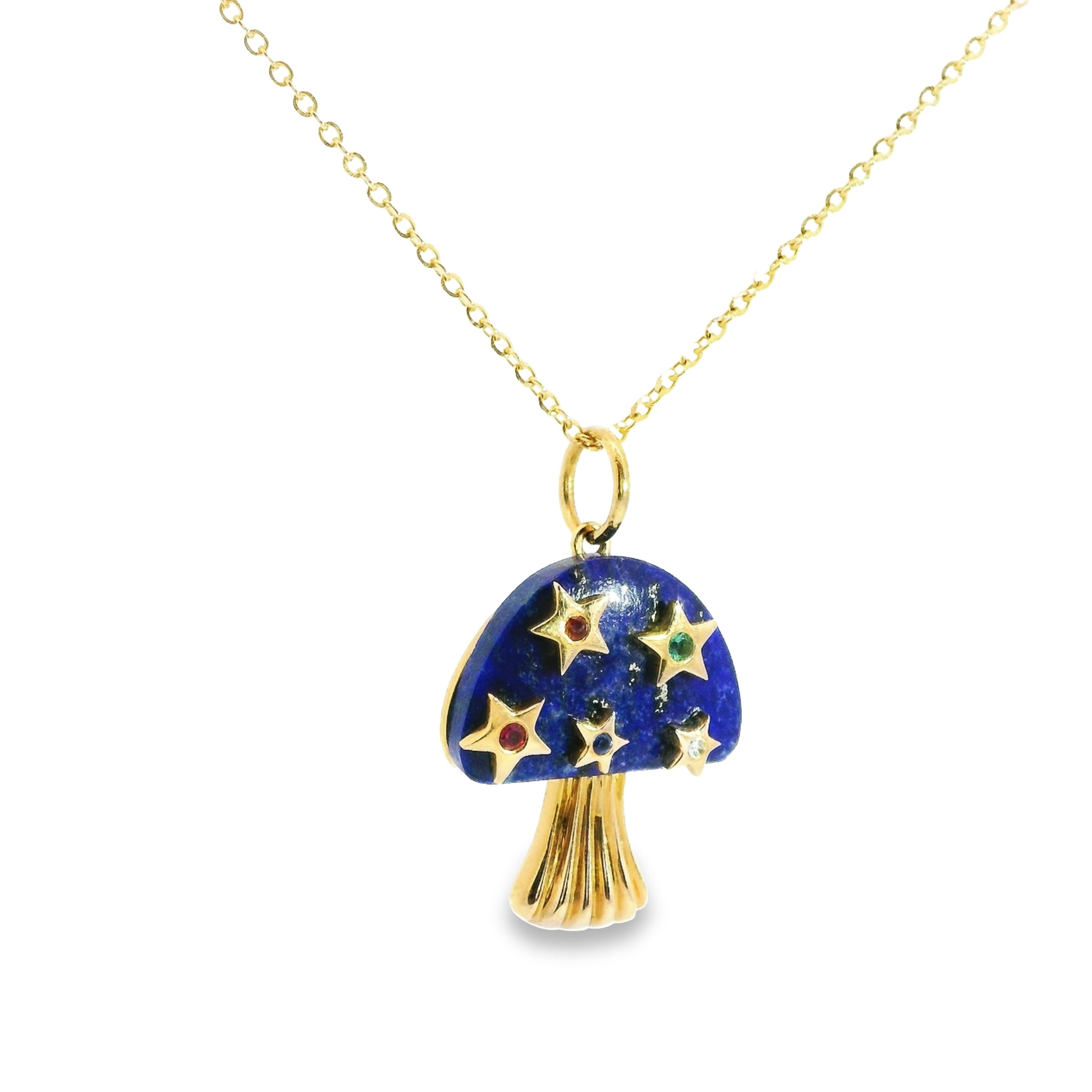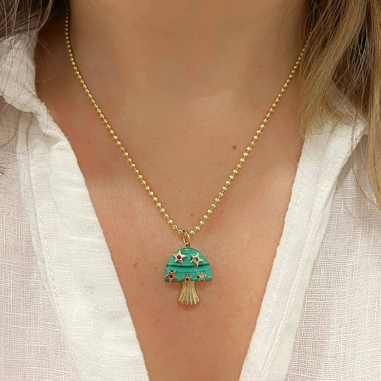 Dijes de mushroom con cadena en oro amarillo 14k.