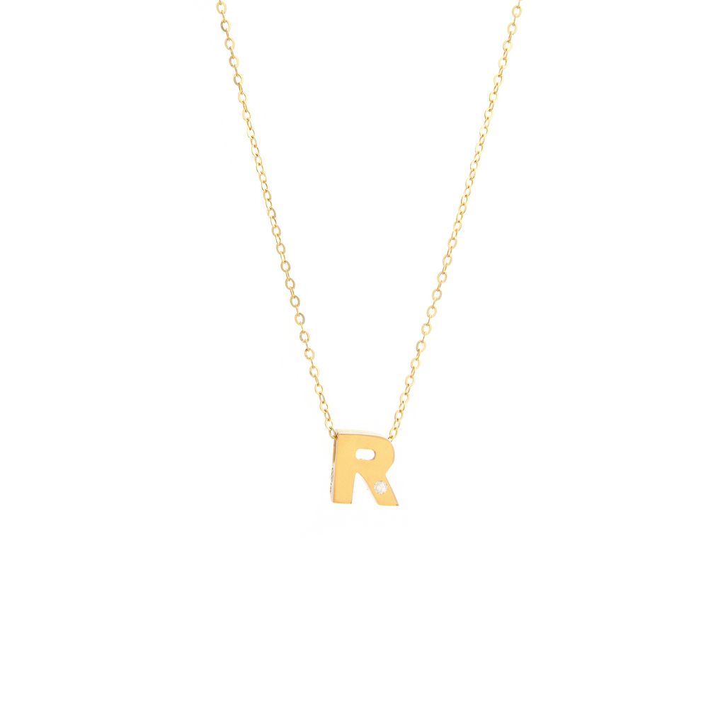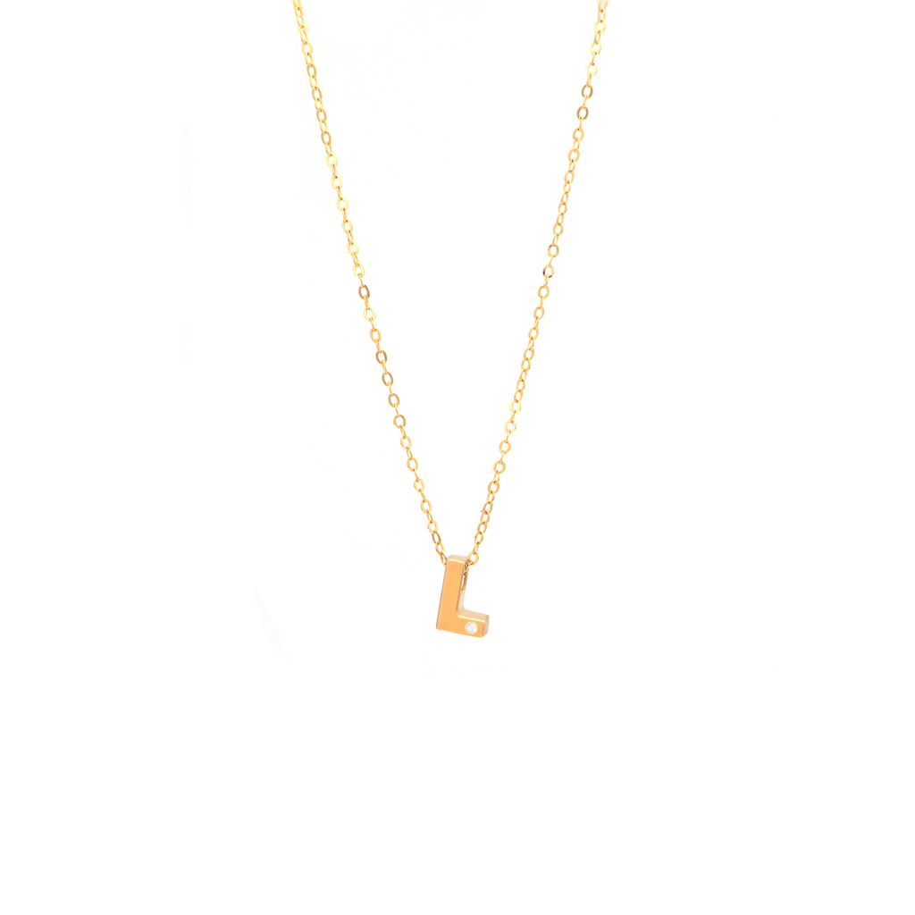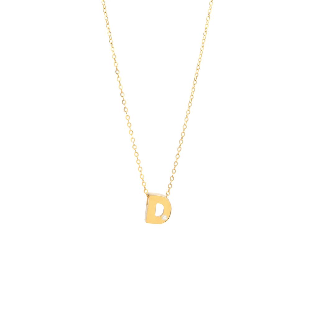 Iniciales en oro amarillo 14k con .01ct de diamantes y cadena.