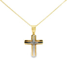 Cruz en oro blanco y amarillo 14k. No incluye cadena.