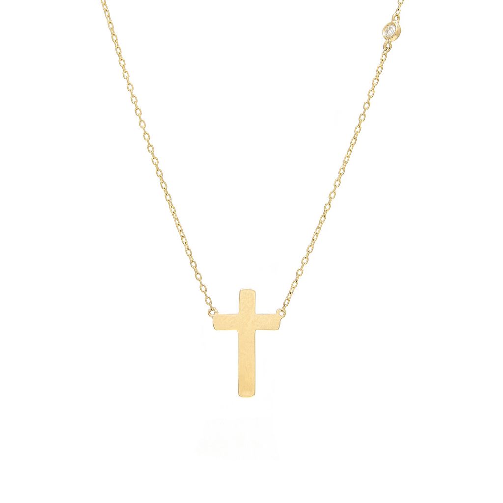 Cadena con cruz en oro amarillo 14k con 0.03ct de diamante.