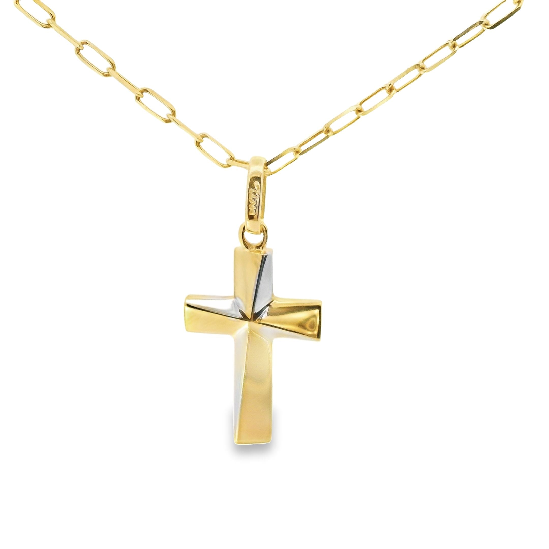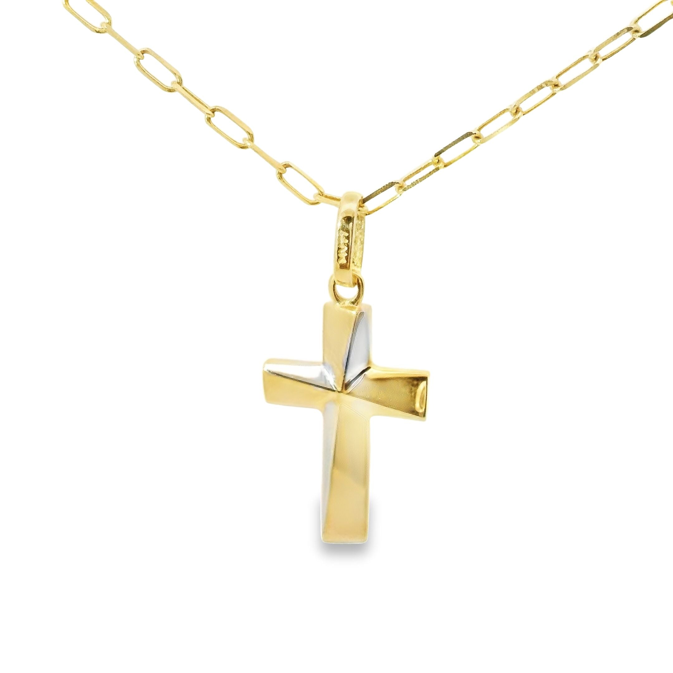 Cruz en oro blanco y amarillo 14k. No incluye cadena.