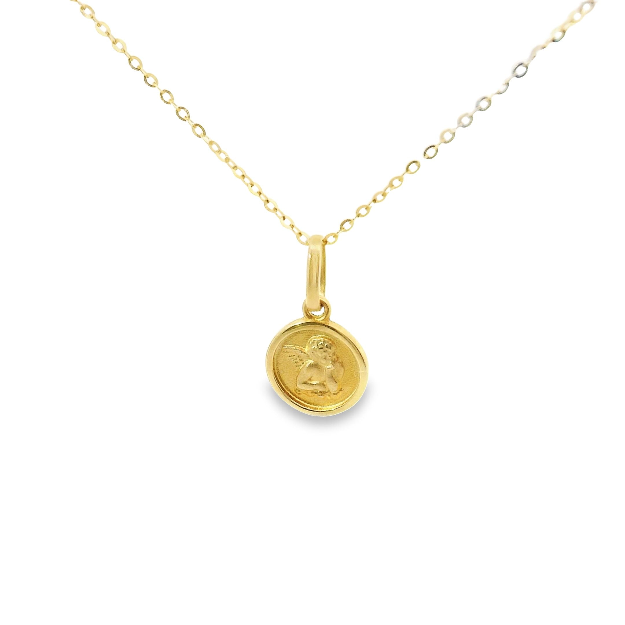 Medallita mini de angel de la guarda en oro amarillo 14k con cadena.
