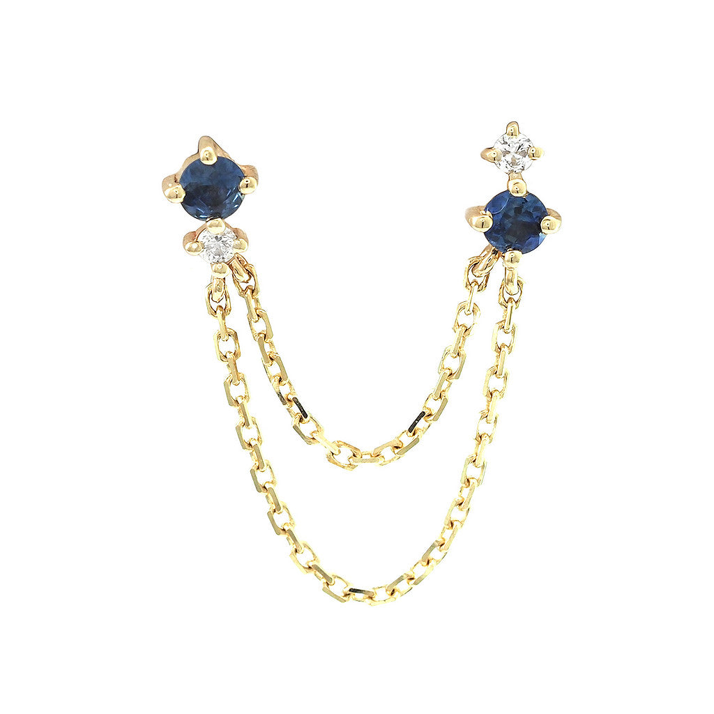 Arete para doble perforación en oro amarillo 14k con 0.16ct de zafiro y 0.03ct de diamante.