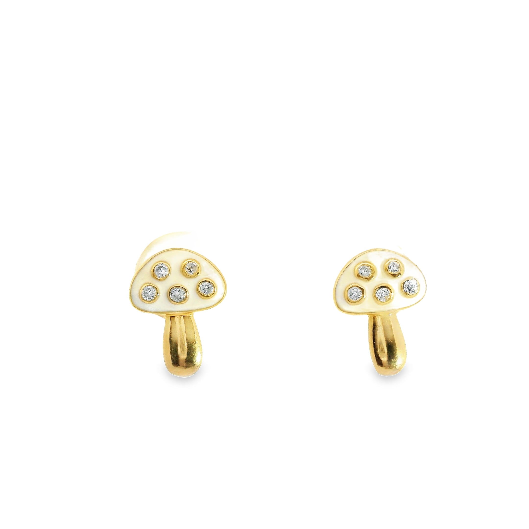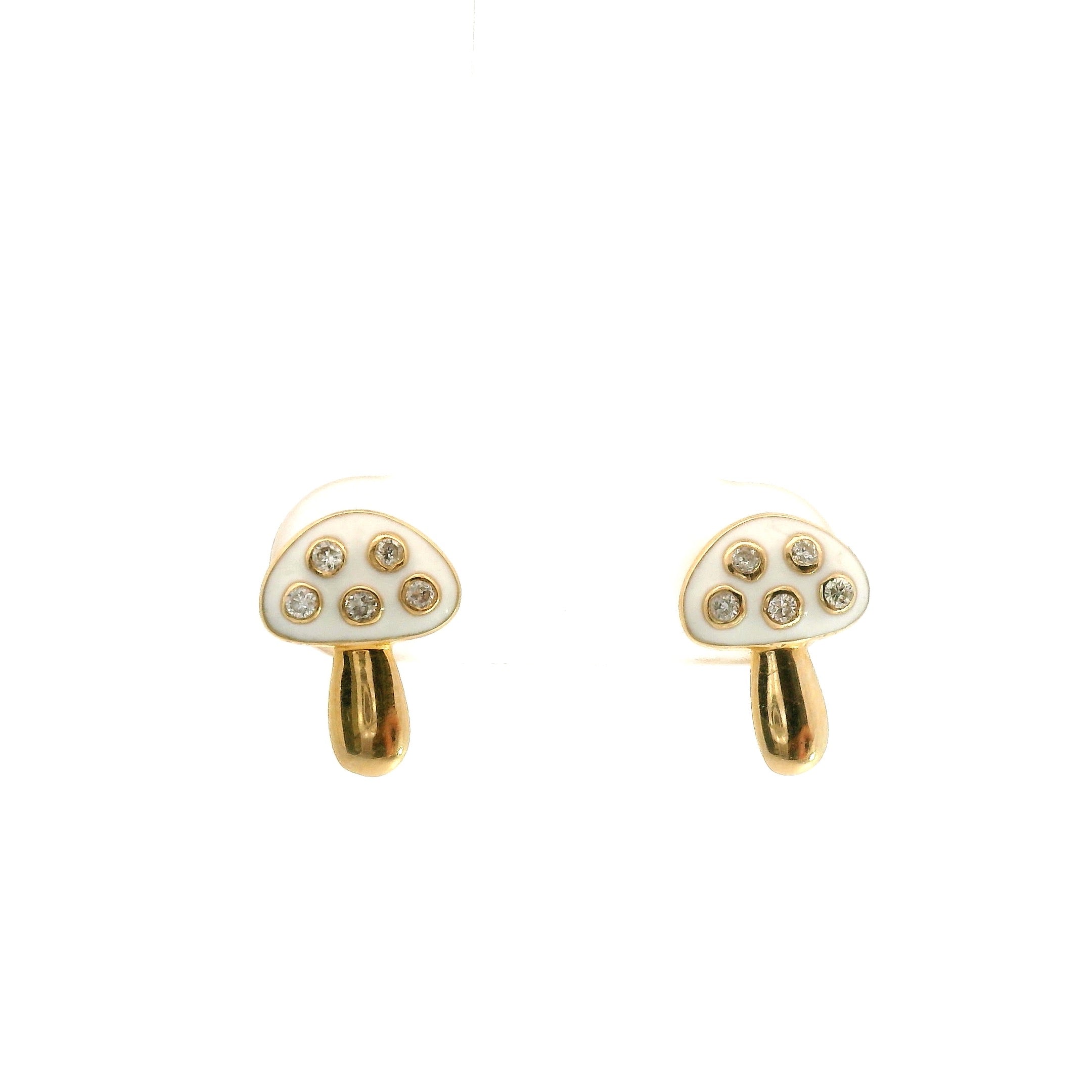 Aretes de honguito en oro amarillo 14k con 0.9ct de diamantes y esmalte.