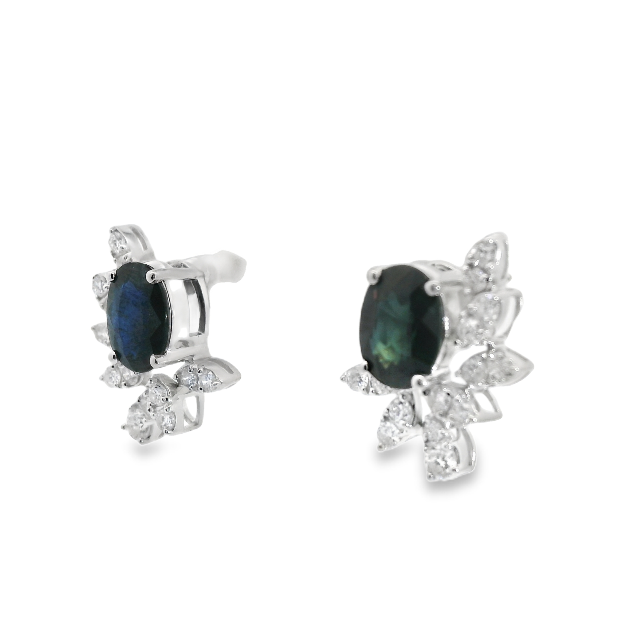 Aretes en oro amarillo 18k con .42ct de diamantes y 2.40ct de zafiro.