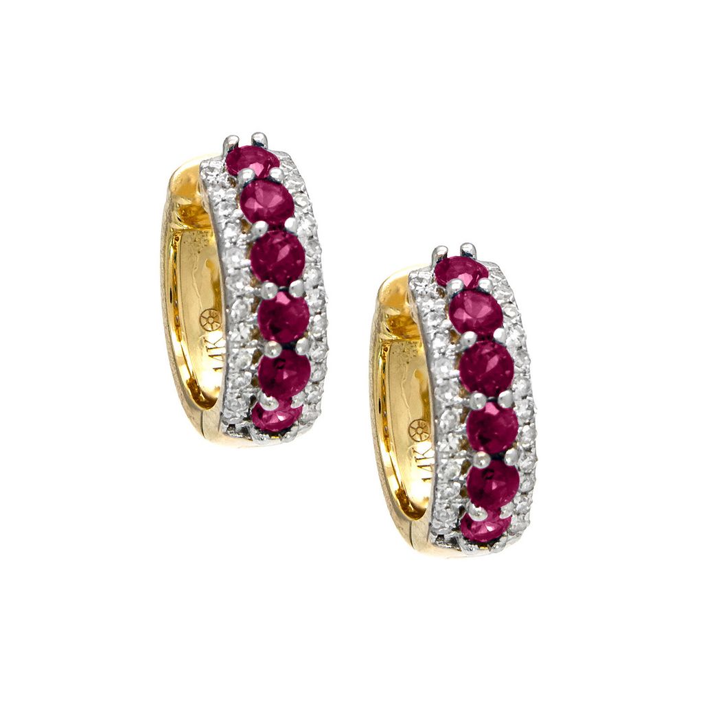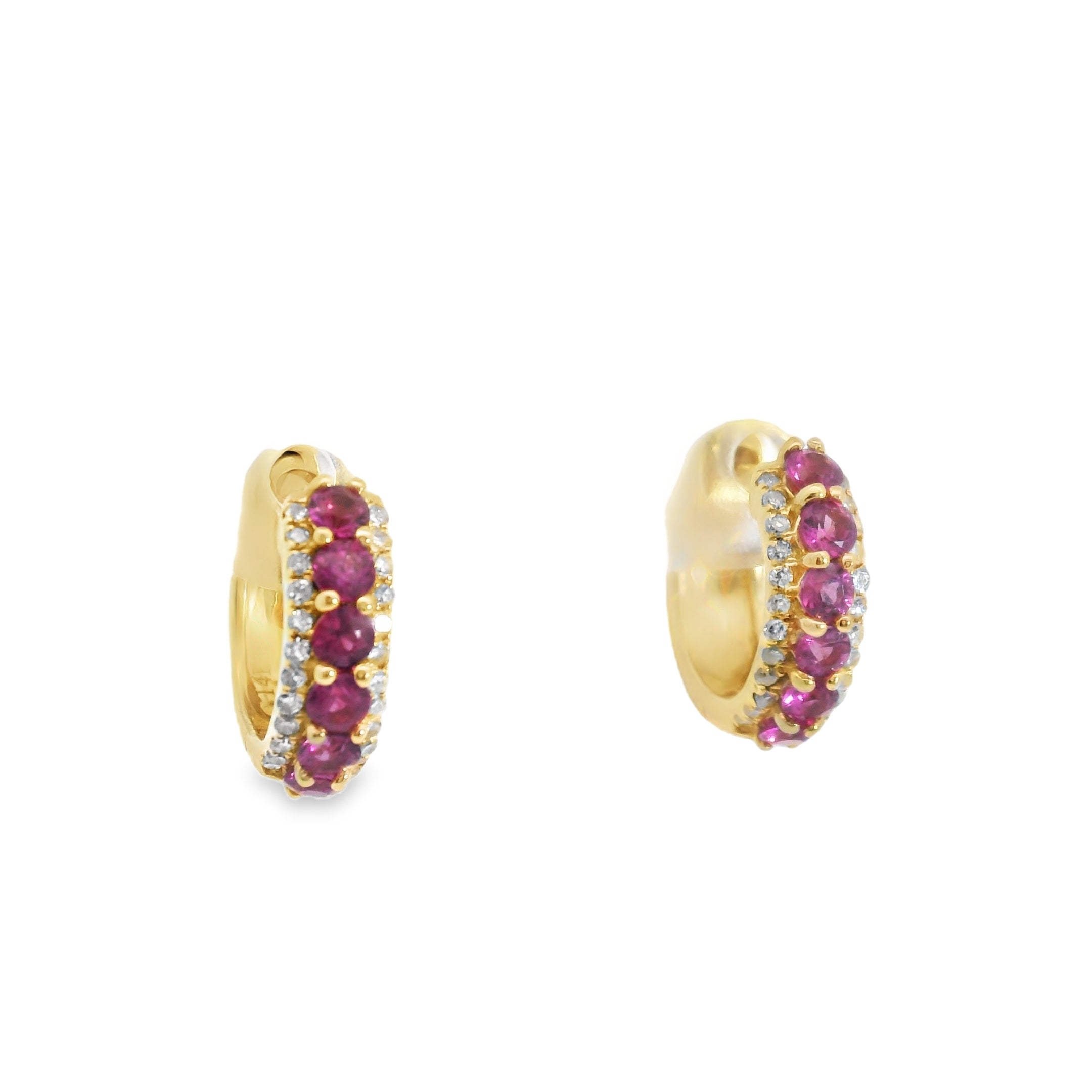 Huggies de oro amarillo 14k con .15ct de diamante y .53ct de ruby.