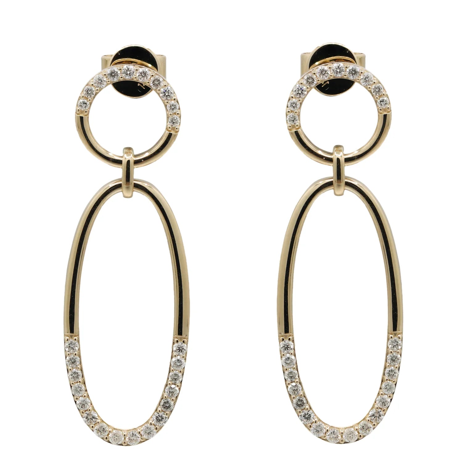 Aretes largos en oro amarillo 14k con .61ct de diamantes.