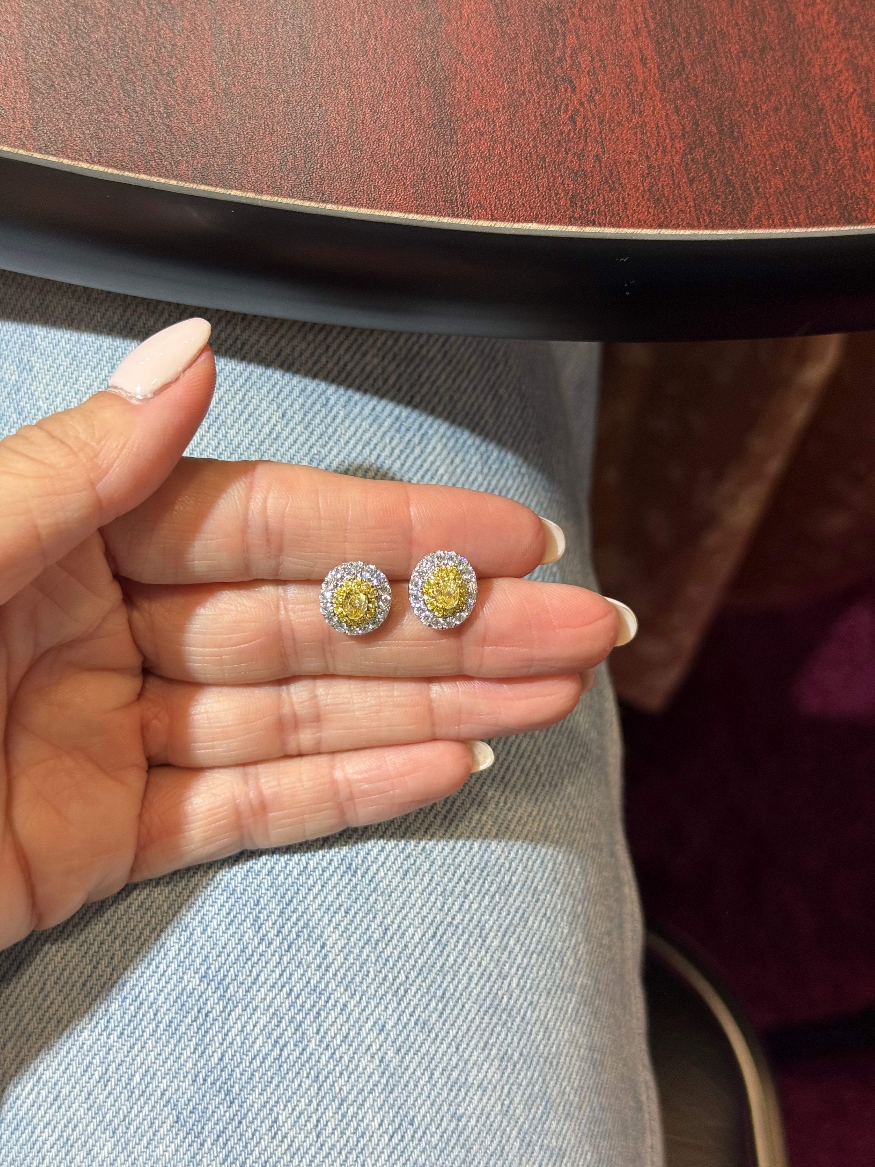 Aretes en oro blanco 14k con .85ct de diamante amarillo y .70ct de diamante blanco.