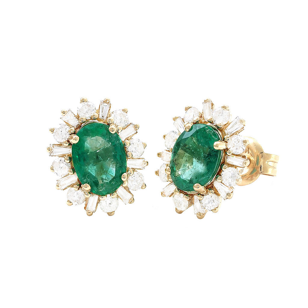Aretes en oro amarillo 14k con 1.39ct de esmeralda y .60ct de diamantes.