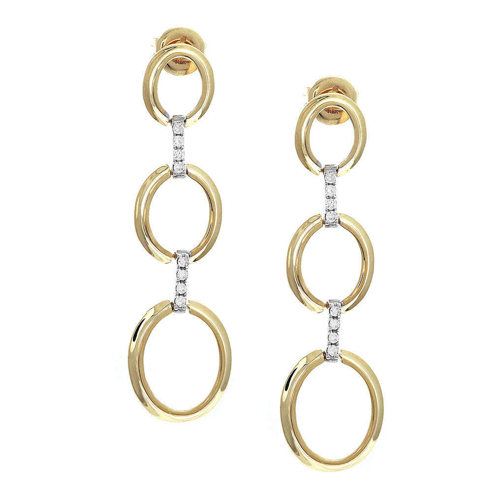 Aretes colgantes en oro amarillo 14k con .11ct de diamantes.