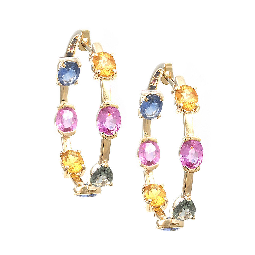 Arracadas en oro amarillo 14k con 4.05ct de multigem ( zafiro amarillo, verde, azul y rosa).