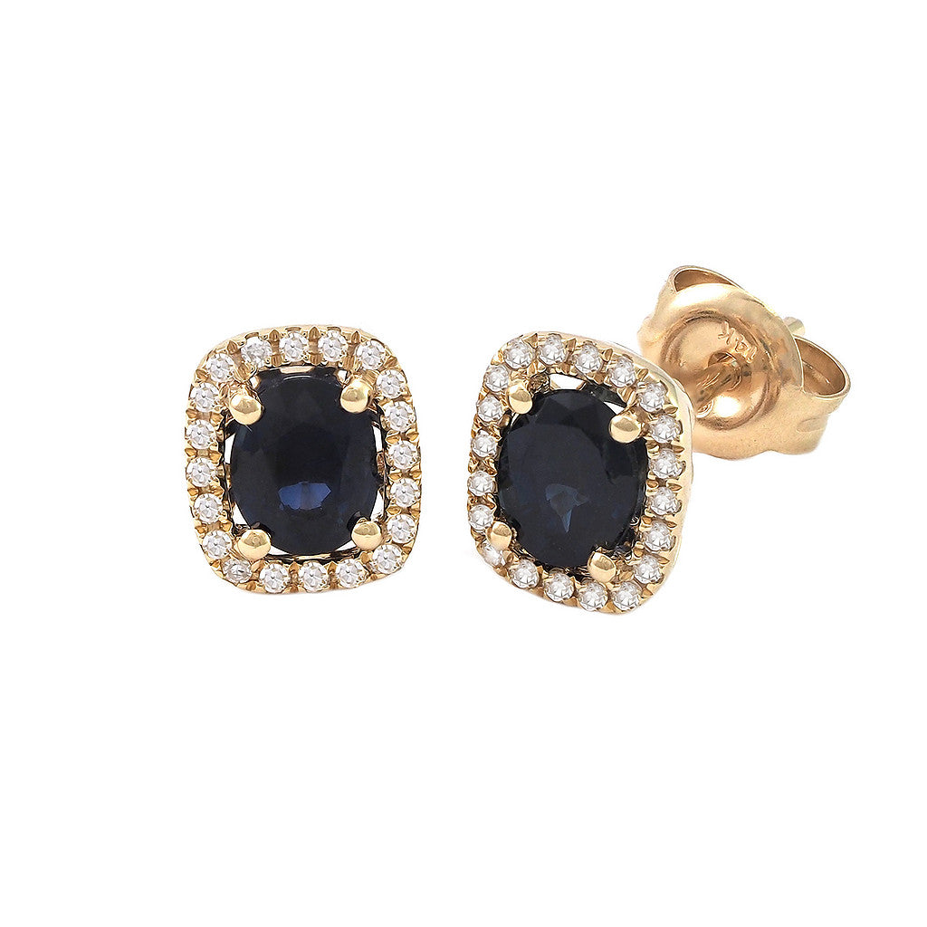 Aretes en oro amarillo 14k con .12ct de diamantes y .93ct de zafiro.