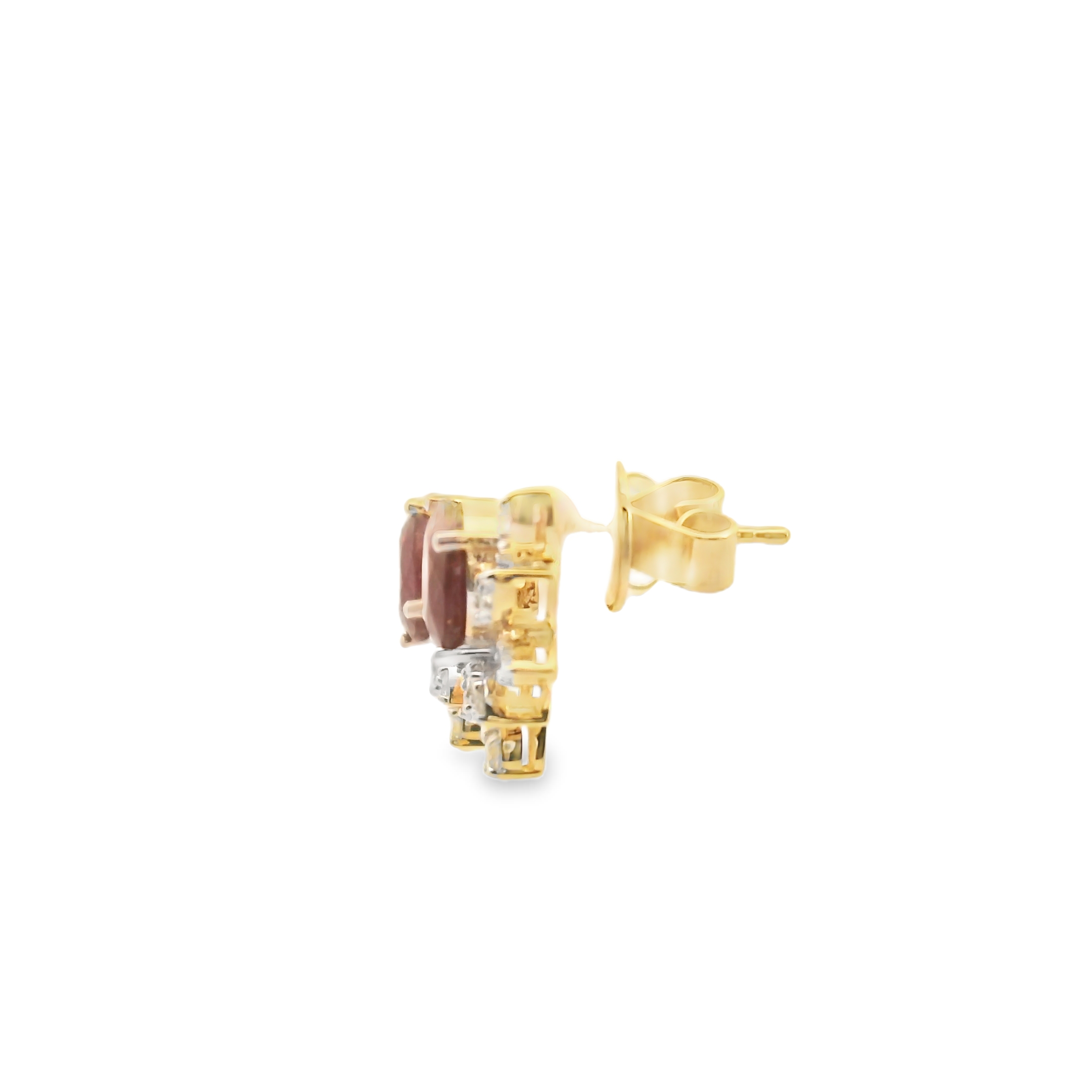 Aretes en oro amarillo 18k con .43ct de diamantes y 1.80ct de rubi.