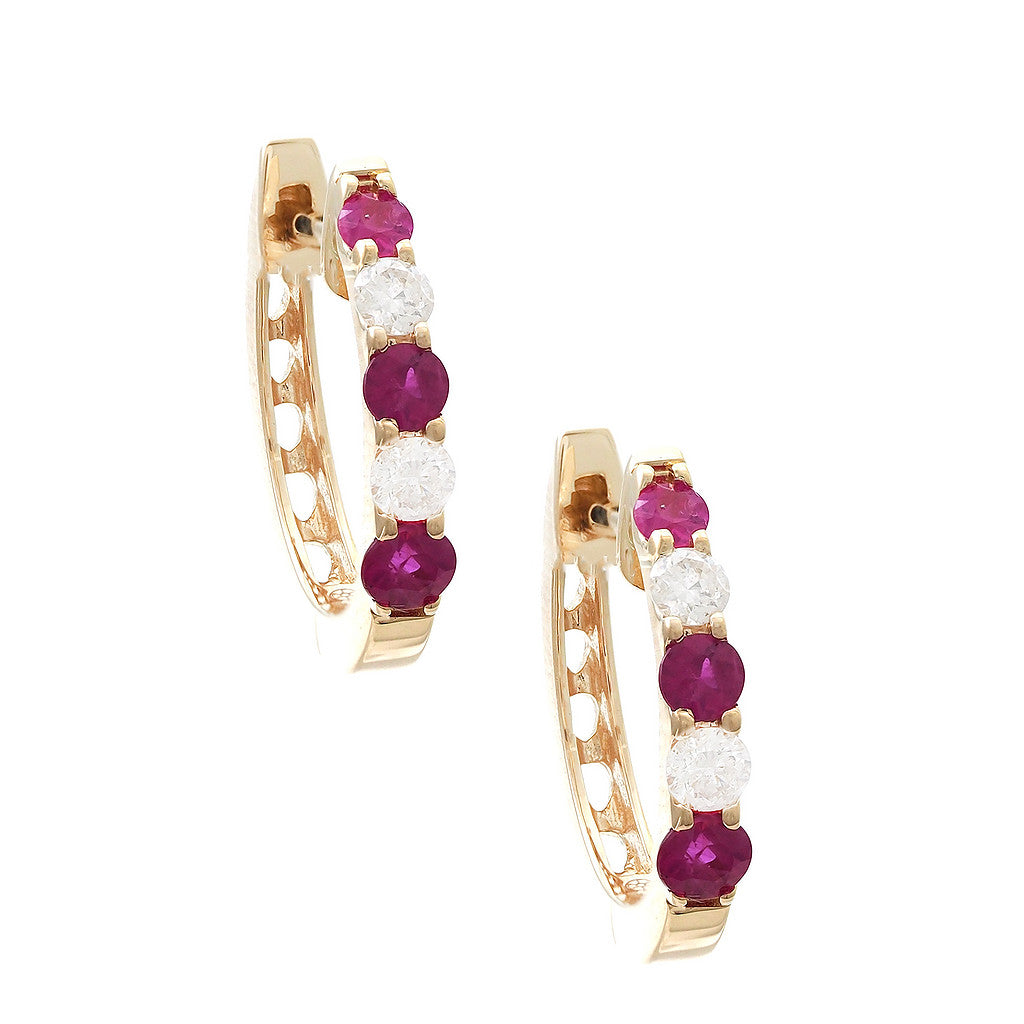 Huggies en oro amarillo 14k con .20ct de diamantes y .40ct de ruby.