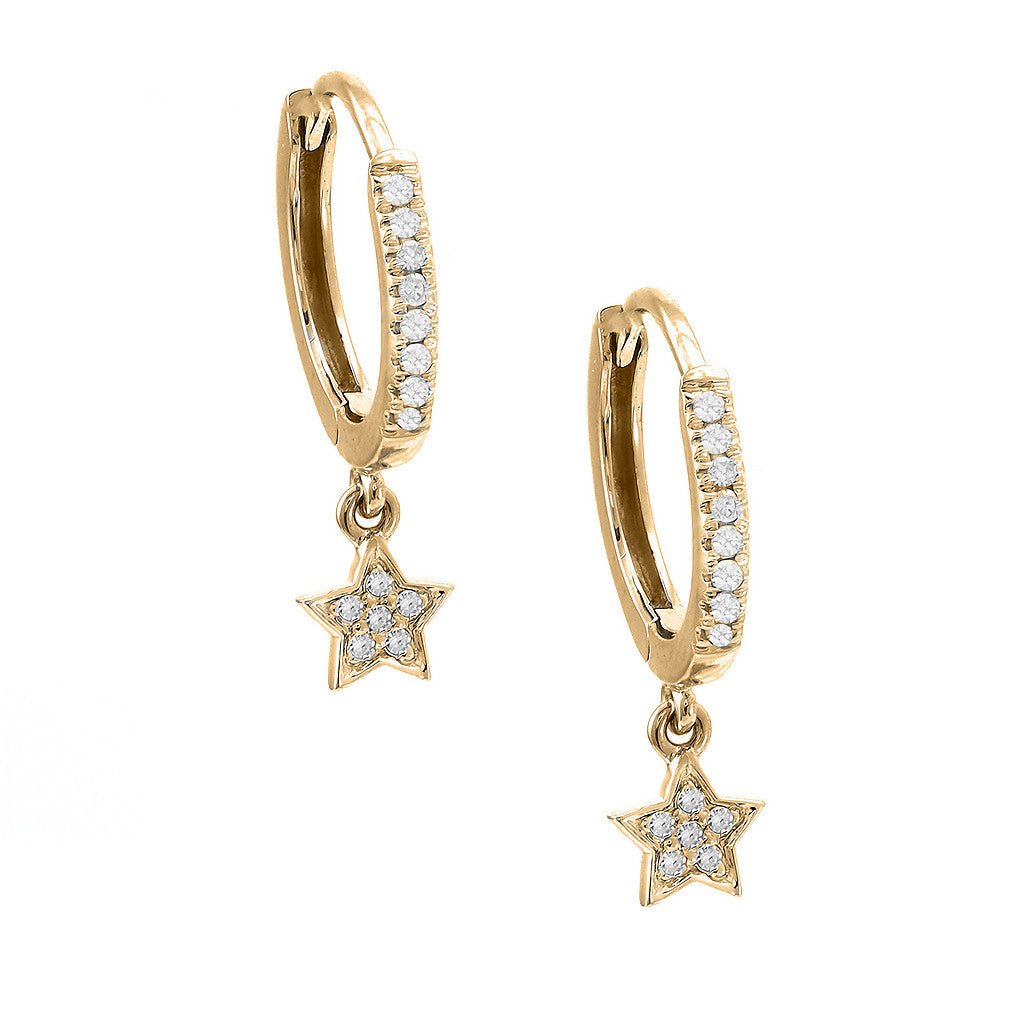 Huggies de estrellas minis en oro amarillo 14k con .11ct de diamantes.