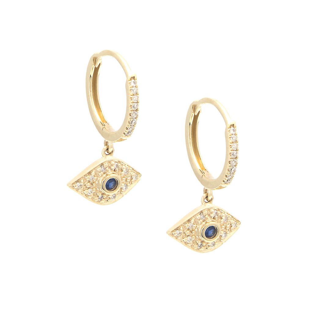 Huggies en oro amarillo 14k con .13ct de diamantes y .06ct de zafiros.