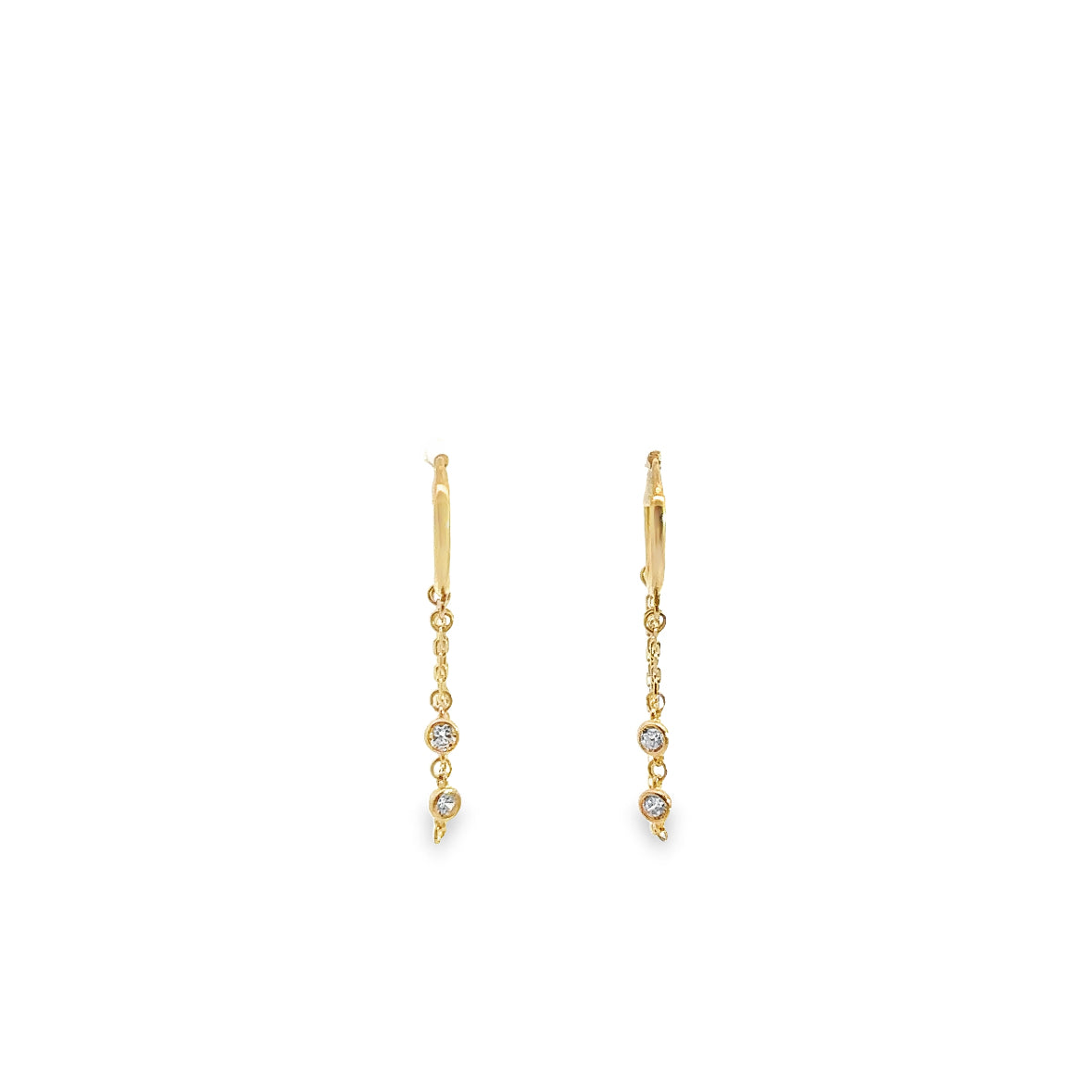 Huggies con cadenita colgante en oro amarillo 14k.