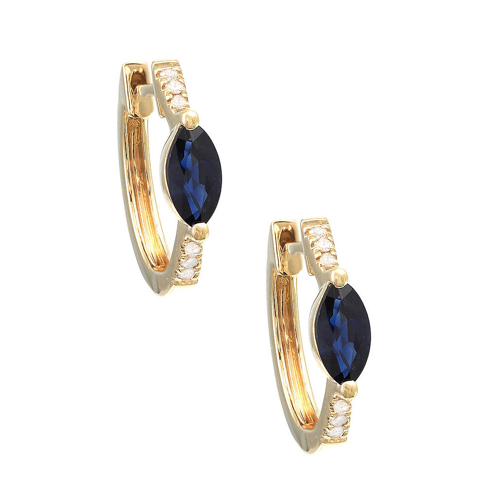 Huggies en oro amarillo 14k con 0.05ct de diamante y 0.60ct de zafiro.