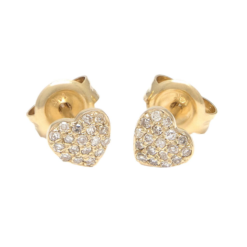 Studs de corazon en oro amarillo 14k con .10ct de diamantes.