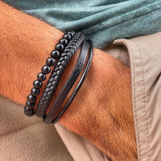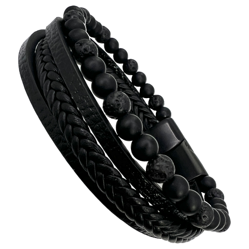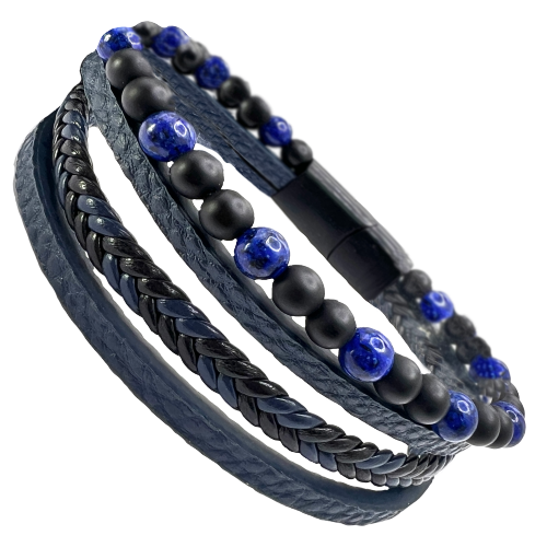 Pulsera de hombre en acero inoxidable con piel y broche de iman.