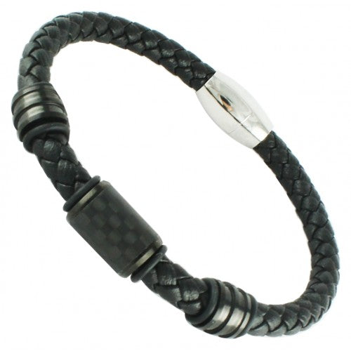 Pulsera de hombre en acero inoxidable y piel con broche de iman.
