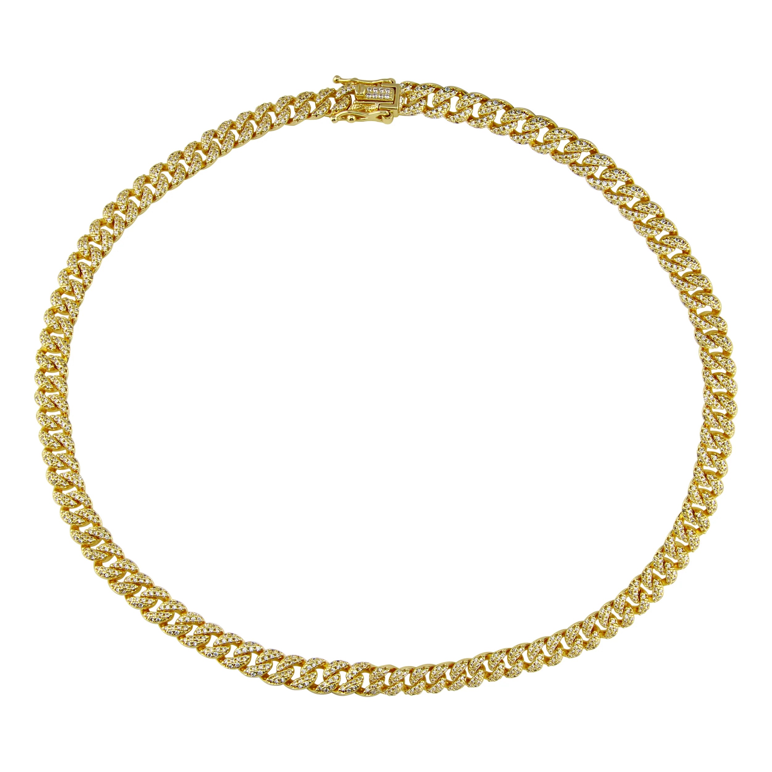 Cadena cubana en plata con baño de oro y zirconia.