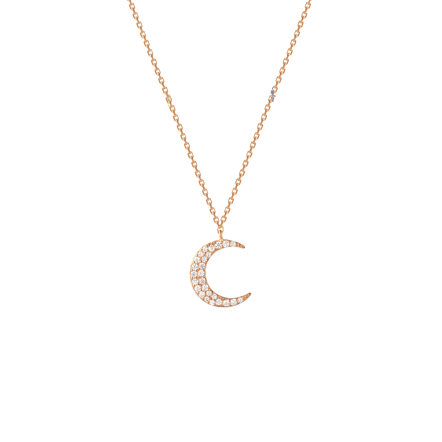 Cadenita con dije de luna en plata con baño de oro rosa y zirconia.
