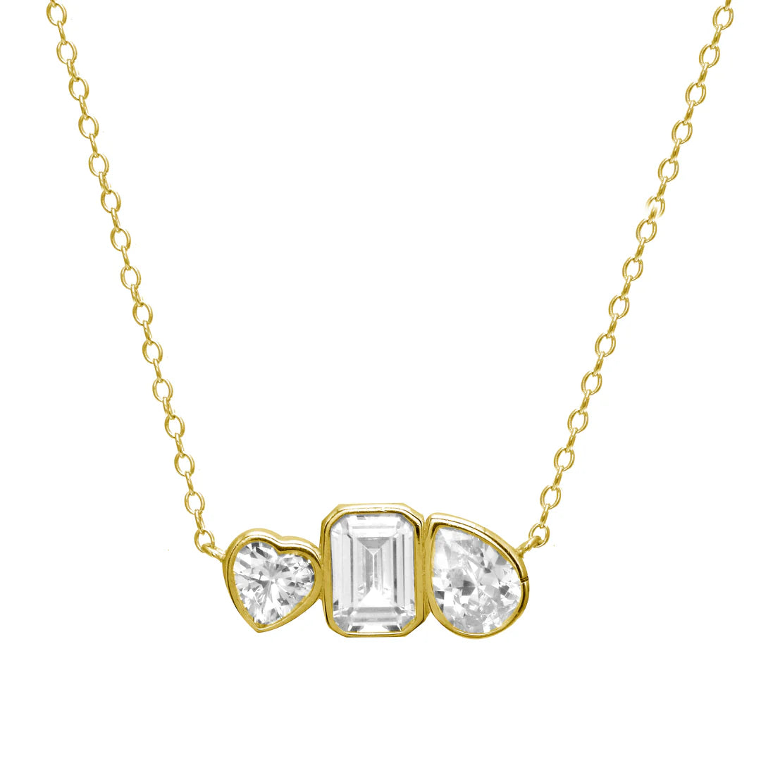 Collar de plata con baño de oro y zirconia.