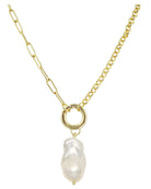 Cadena en plata con baño de oro y dije de perla barroca natural.